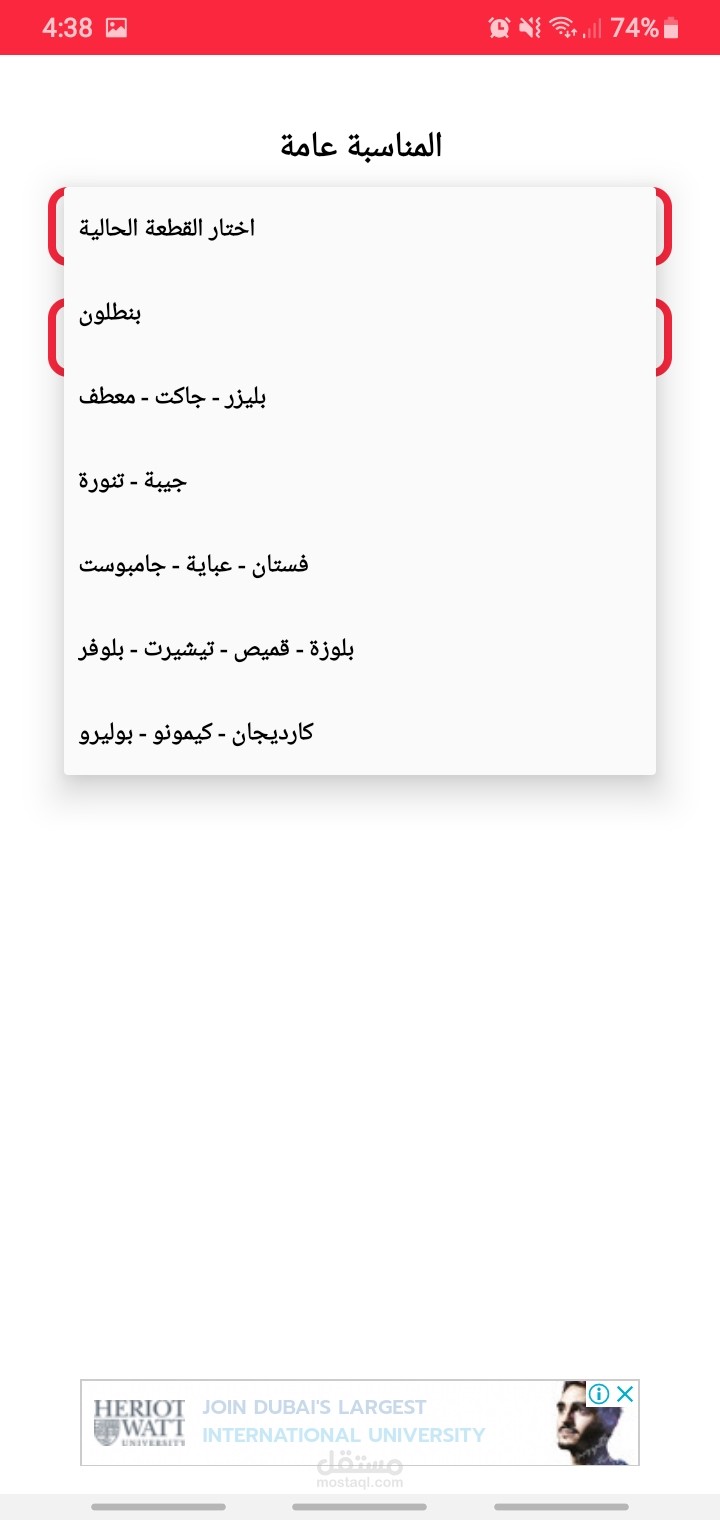 تطبيق يساعدك على اختيار ملابس متناسقة بناء على اختيارك لنوع المناسبة الذاهب اليها ونوع الملابس او القطع التي تريد البحث عنها لارتداءها والالوان التي تريدها