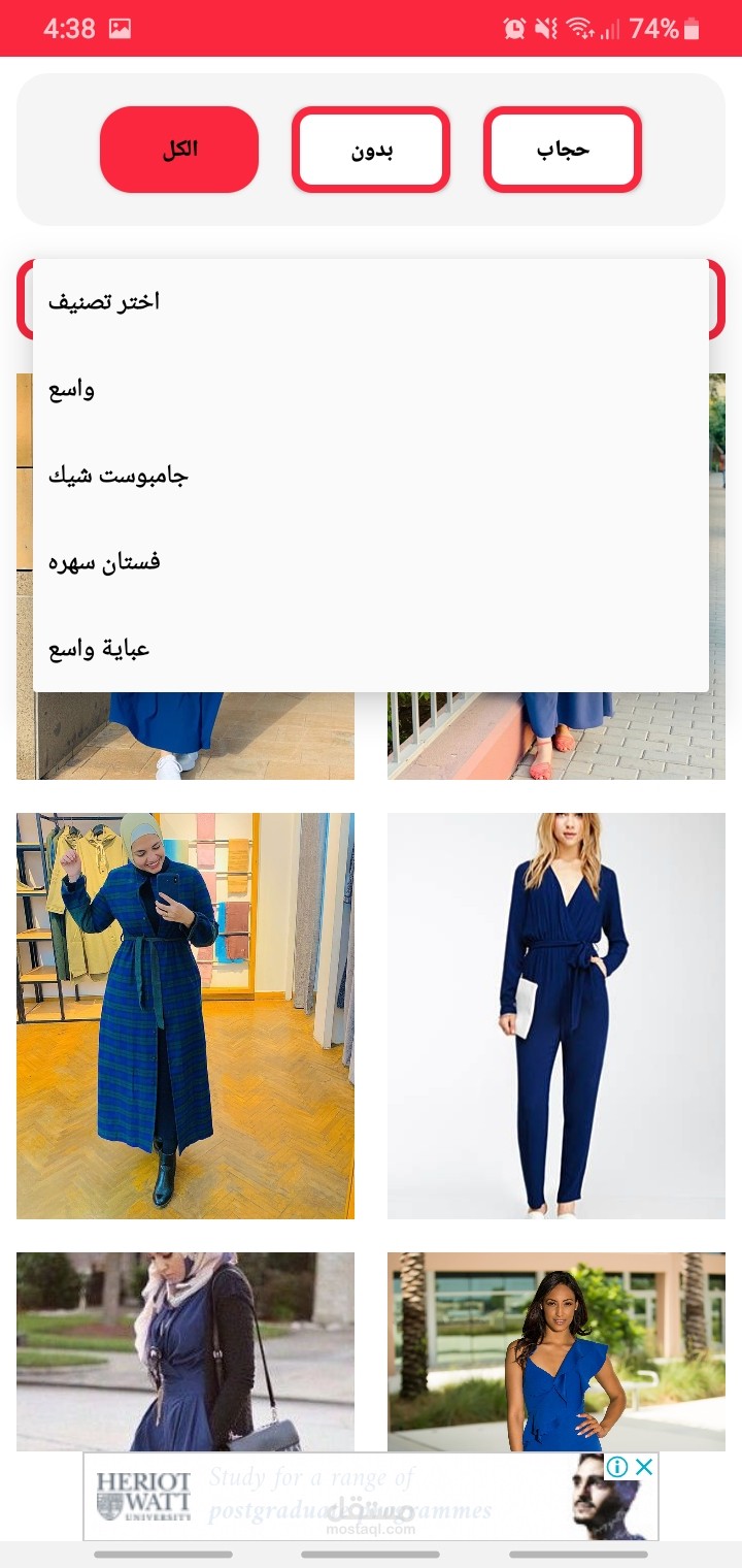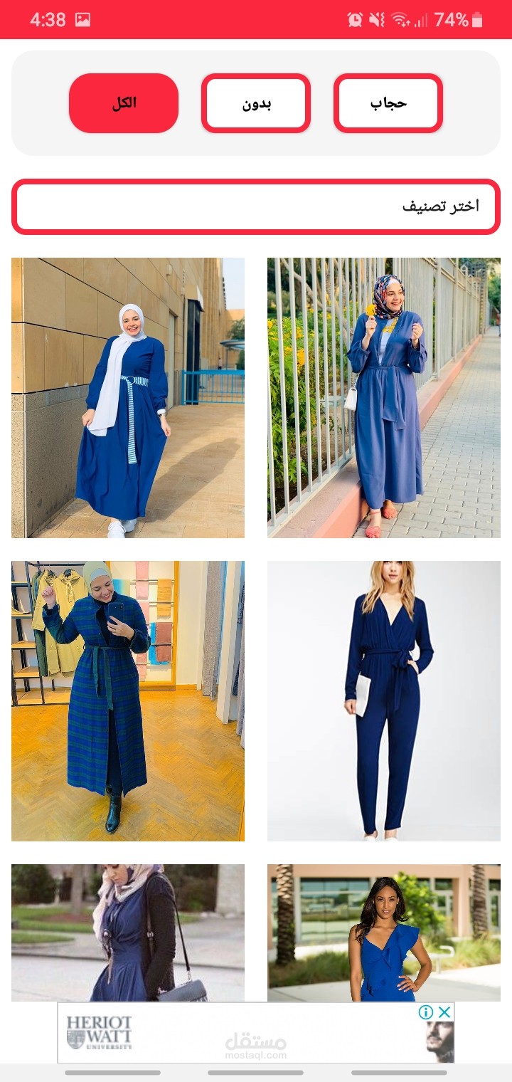 كما يوجد تصنيفات مختلفة للاختيار منها مثل ملابس محجبات او لا او الكل او ملابس من نوع خاص