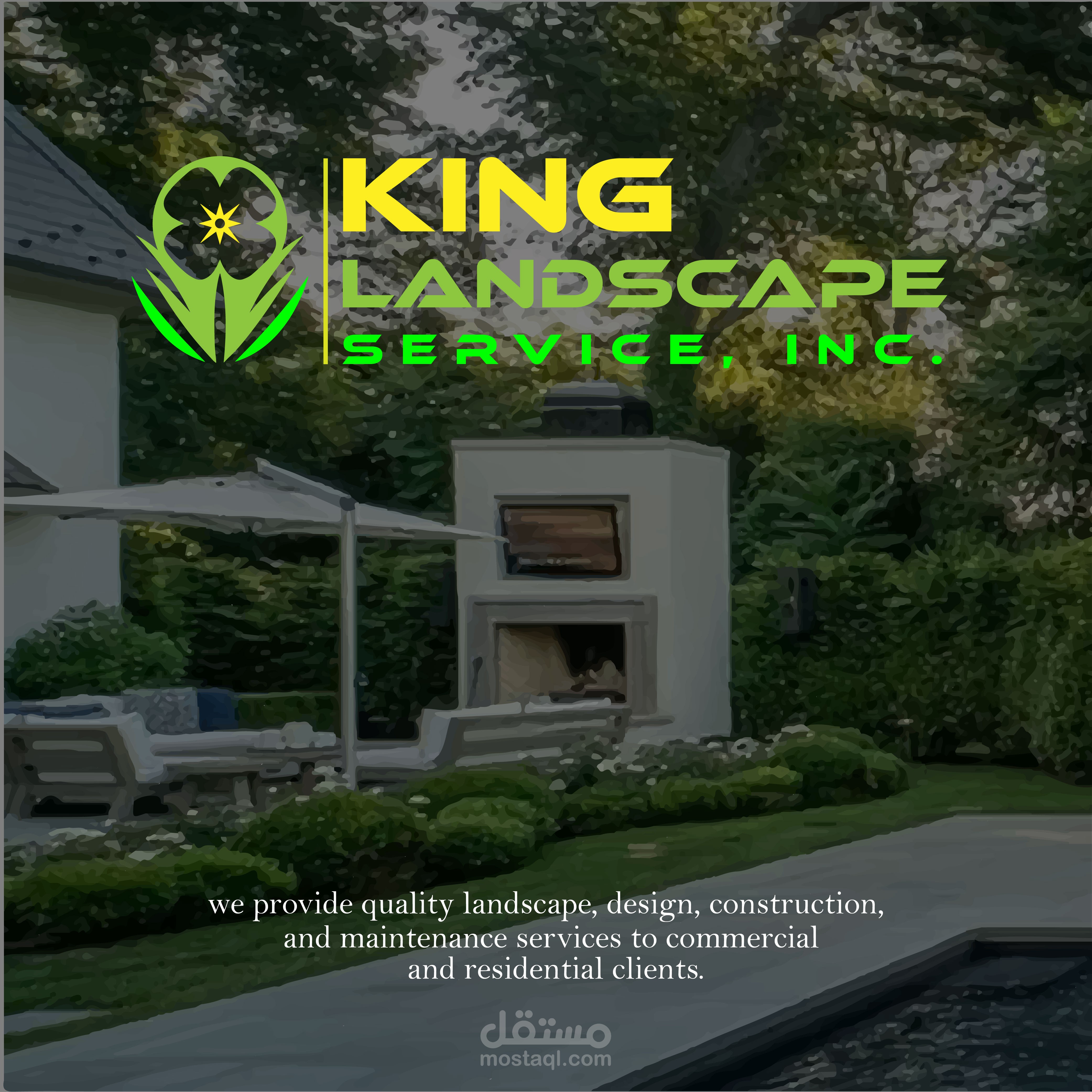 تصميم شعار لشركة لاندسكيب بعنوان KING LANDSCAPE LOGO