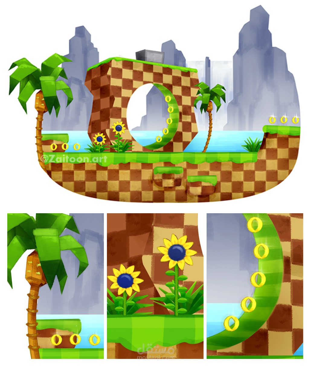 رسمت هذه الخلفية كملصق لمنطقة التلال الخضراء (لعبة سونيك )