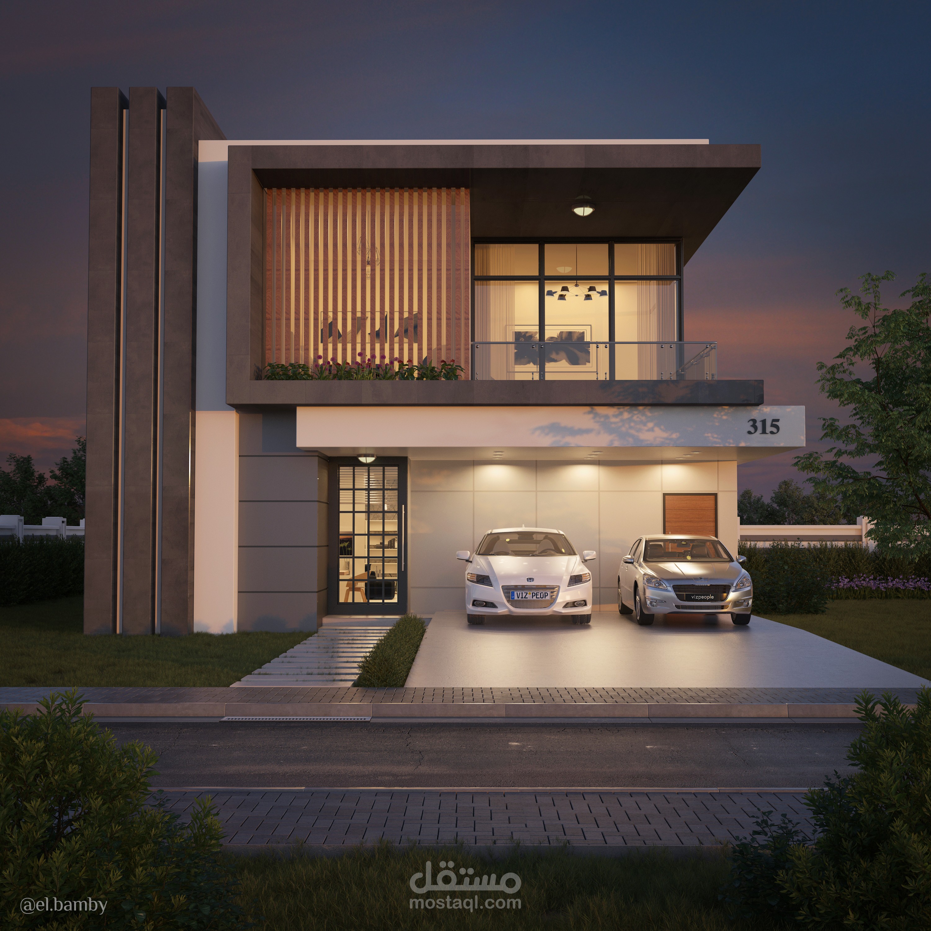 تصميم ثلاثي الأبعاد 3d لواجهة فيلا.