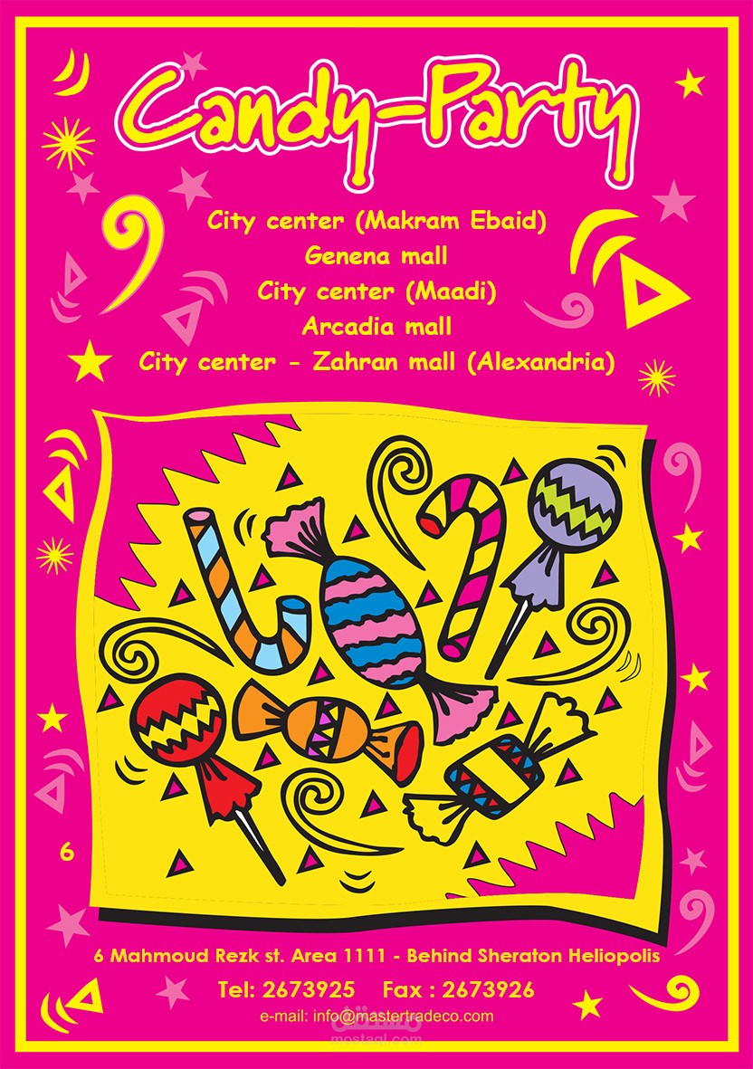 فلاير مطبوع من الجهتين، تم تصميمه بمناسبة الإحتفال بإفتتاح محل جديد للحلويات بفروعه المختلفة في القاهرة.