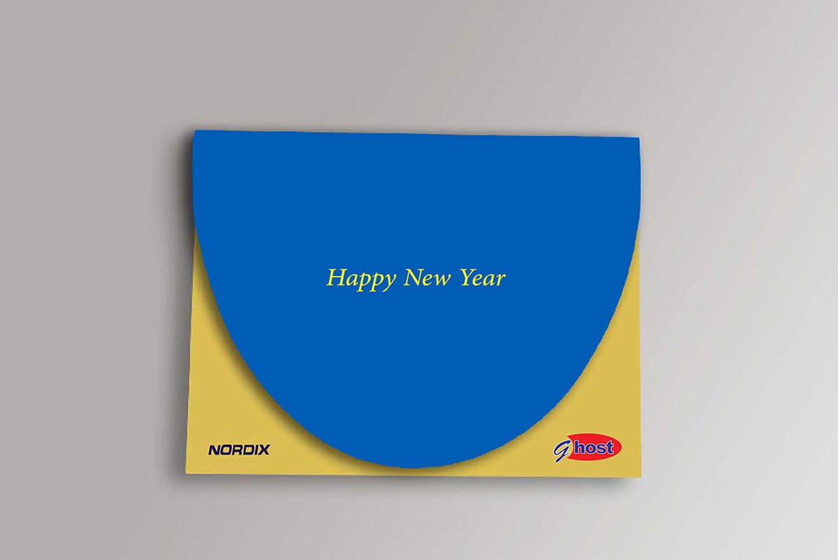 قمت بالرسم والتصميم الجرافيكي وعمل (Die cut) لدعوة معايدة بمناسبة العام الجديد لشركة "جوست" للكمبيوتر، وفي إطار الحملة الإعلانية للبرنامج الحكومي ( كمبيوتر لكل بيت).
