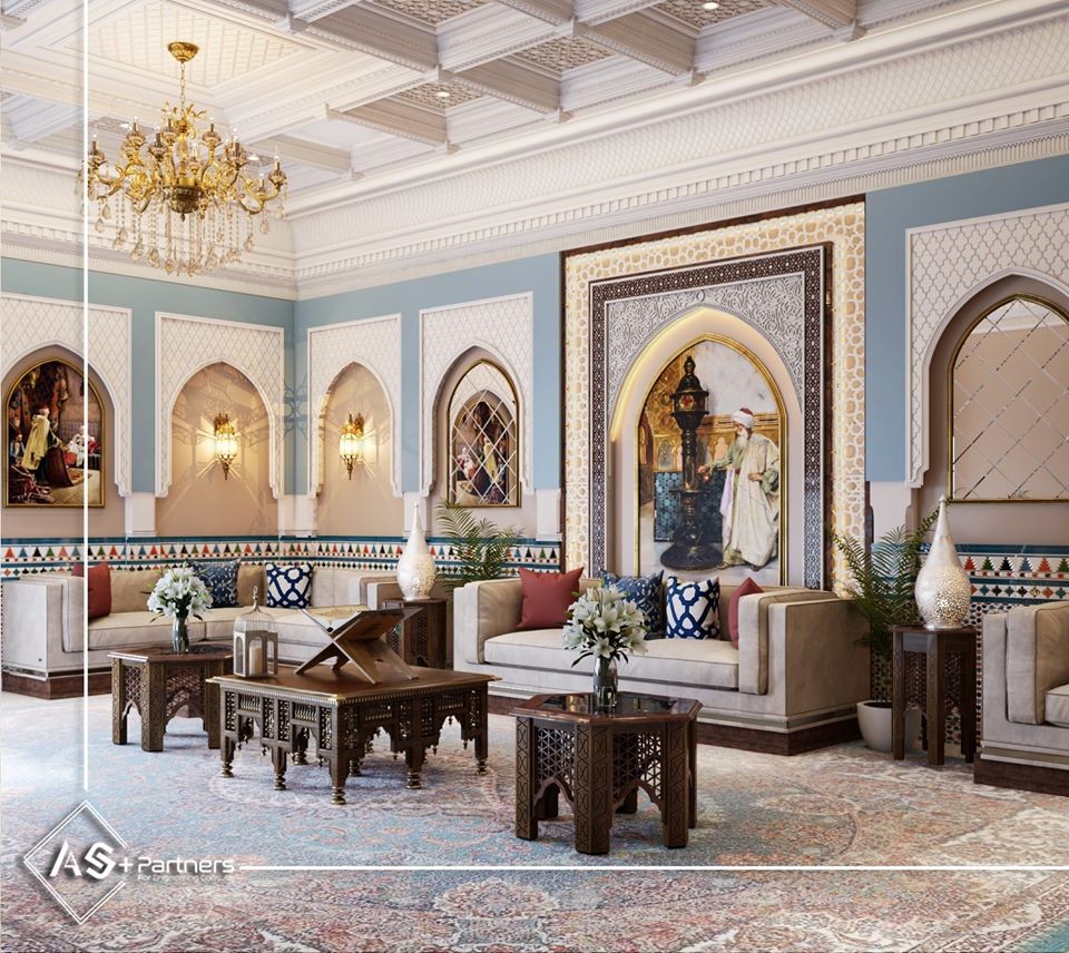 تصميم داخلي لديوانية بدولة الكويت بالنمط الكلاسيكي الممذوج بلمسة اسلاميه
