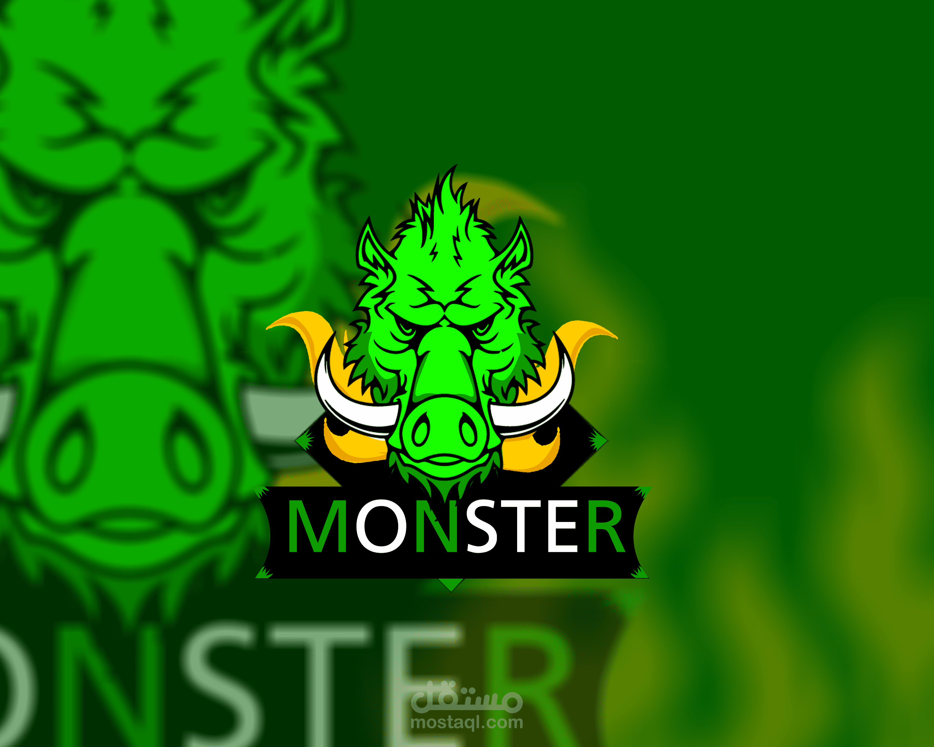 لوجو خاص بقناة جيمنج باسم monster تم تصميمه بواسطه برنامج ادوبي فوتوشوب cs6