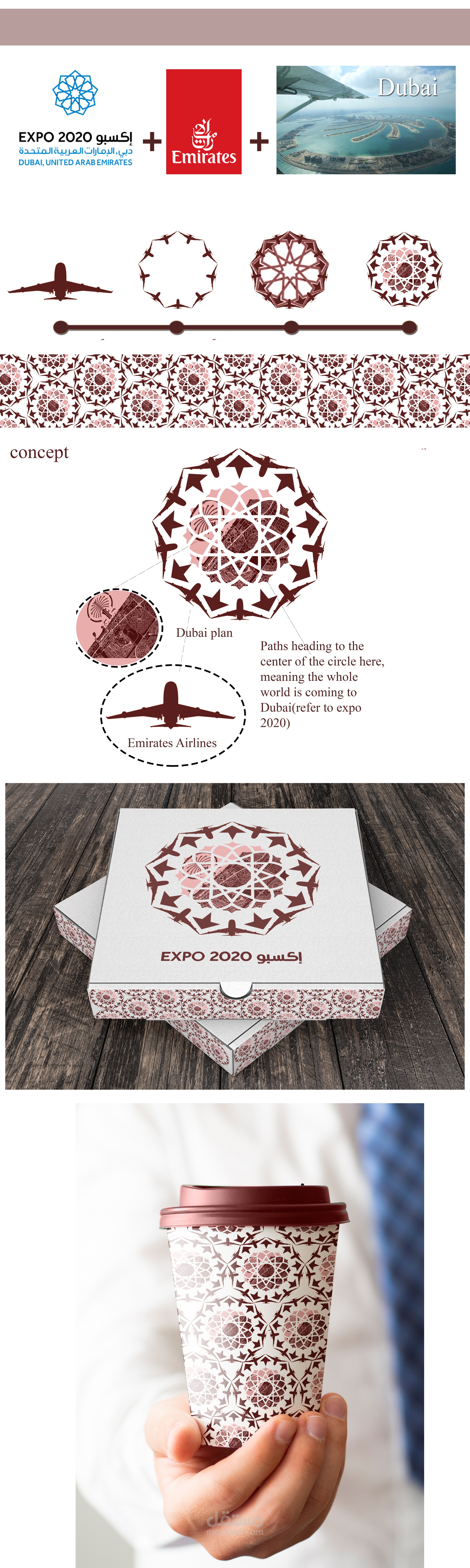 تصميم اغلفة طعام معرض اكسبو 2020 بستايل مشربية بحيث يجمع الدبي و طيران الامارات و اكسبو 2020
