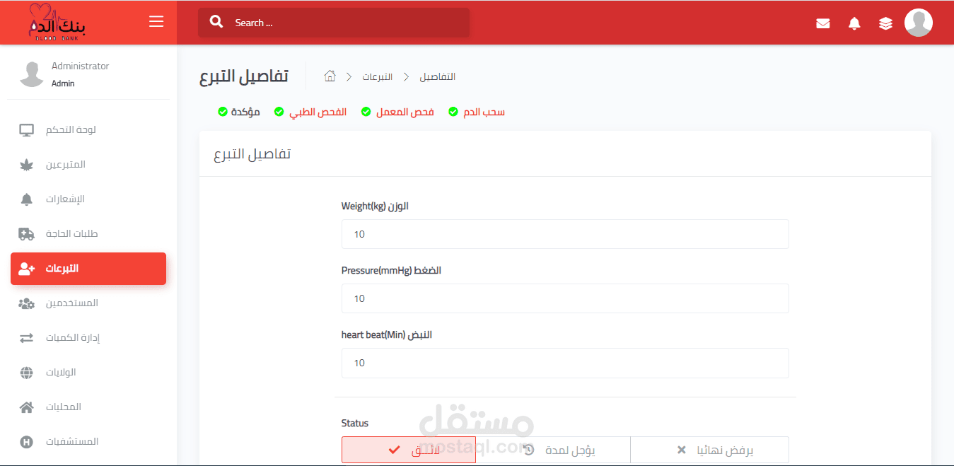 تطبيق لإدارة بنك الدم وإدارة تطبيق الهاتف الخاص بالمتبرعين لعرض طلبات الحاجة وتلبيتها في اقرب وقت.