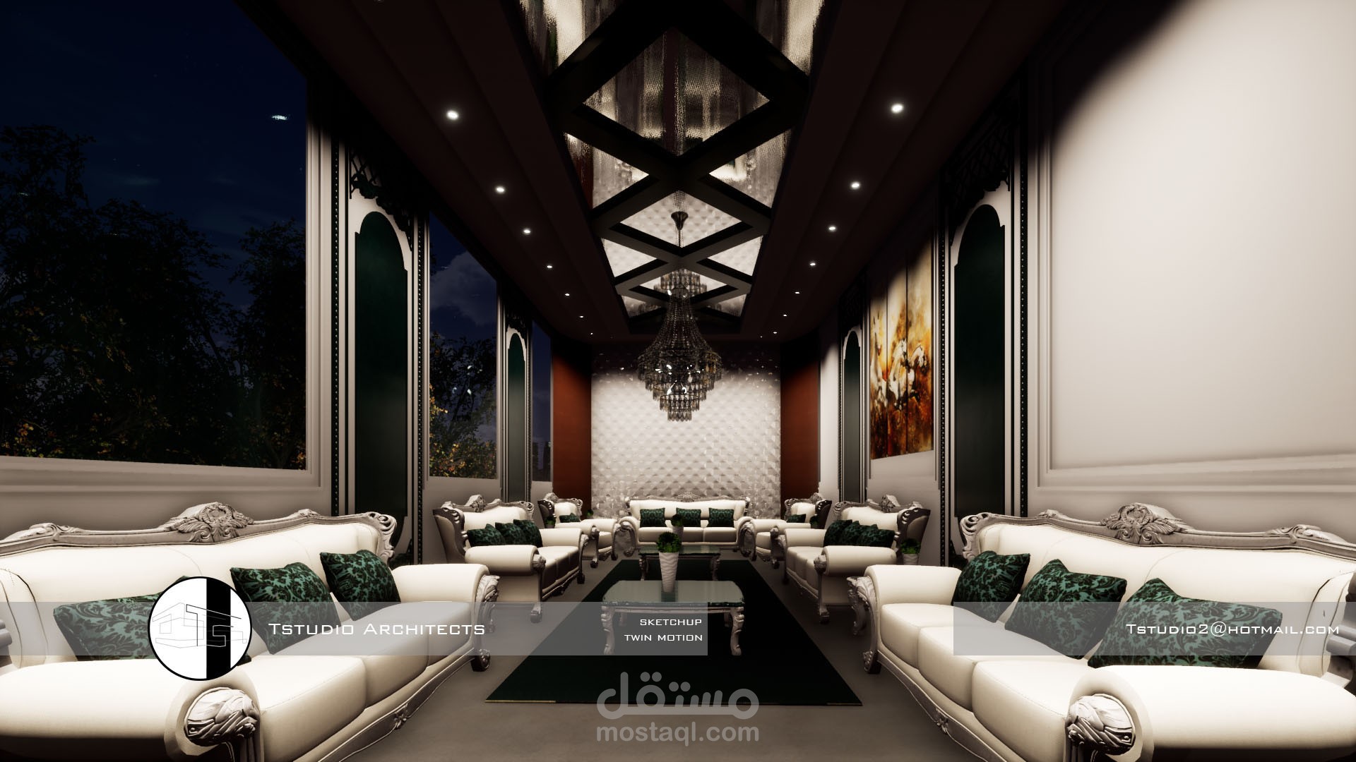 مقترح تصميمي لمجلس رجال ابعاد 8*3 m باستخدام sketchup + twin motion