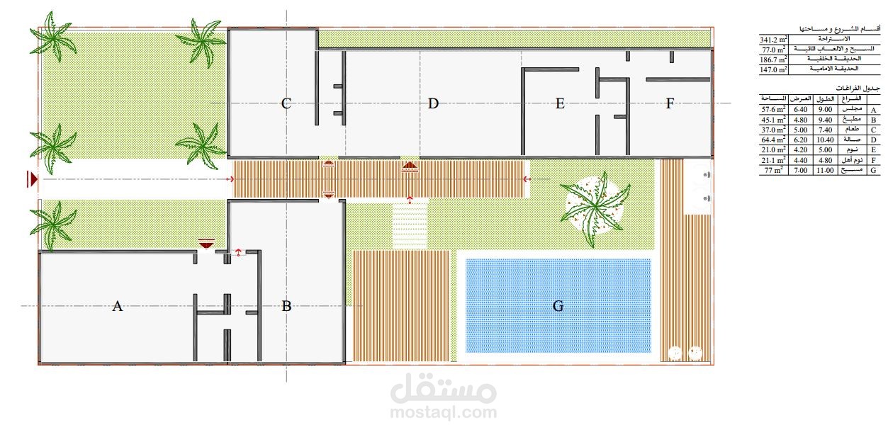 تأتي فكرة المشروع من تخصيص قسم للعائلة يطل على الحديقة