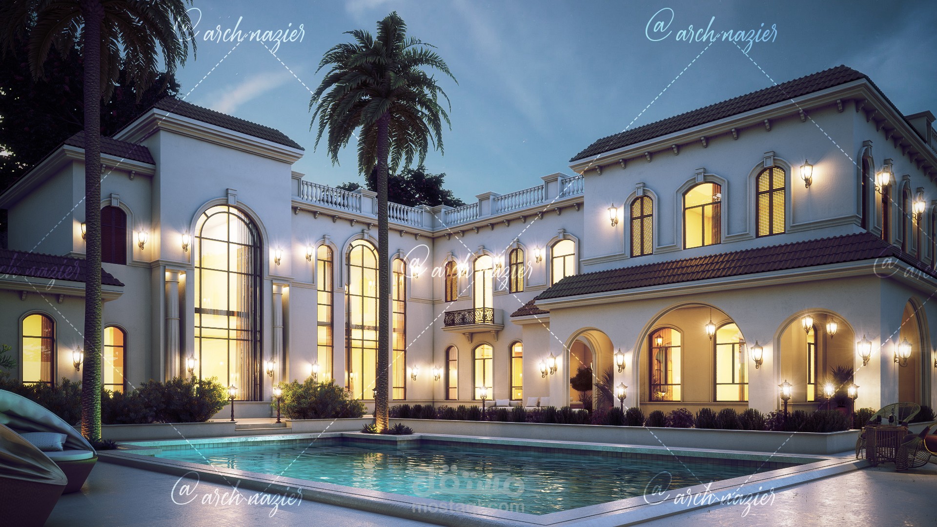 قمت بهذا العمل بتوظيف بعض هذه العناصر مثل الرواق و المشربيات وبعض الزخارف للحصول على الطابع الاندلسي بطريقة معاصرة