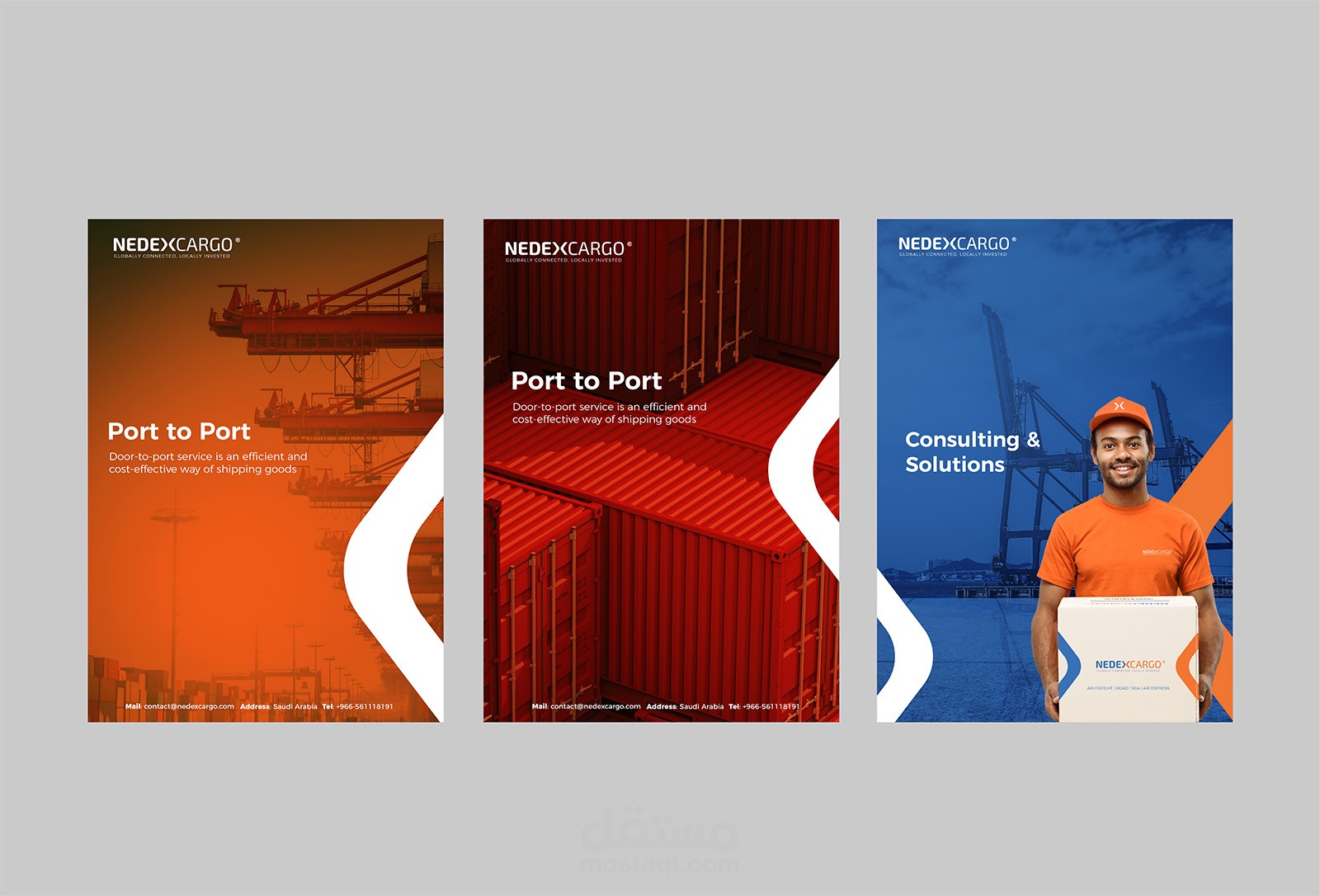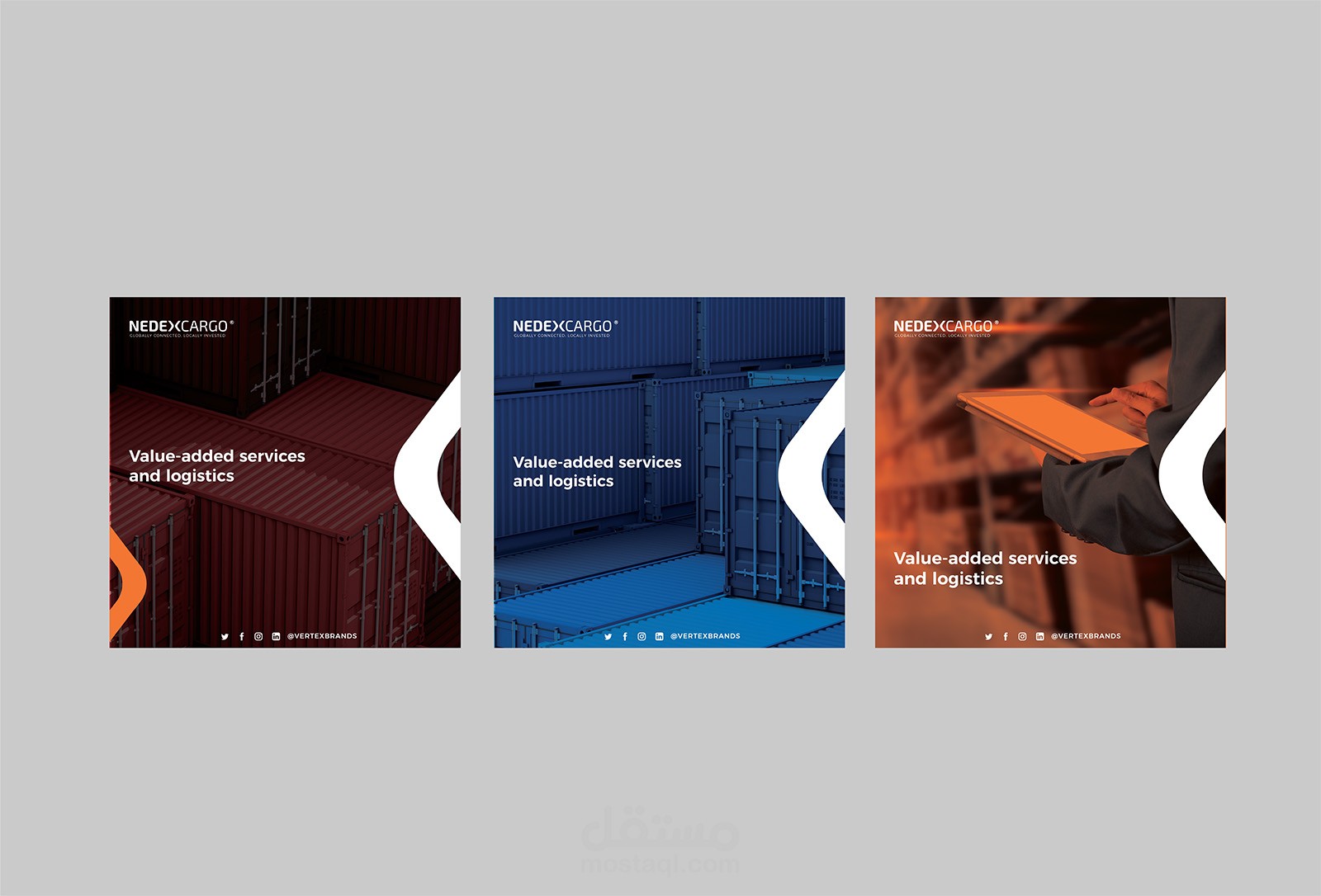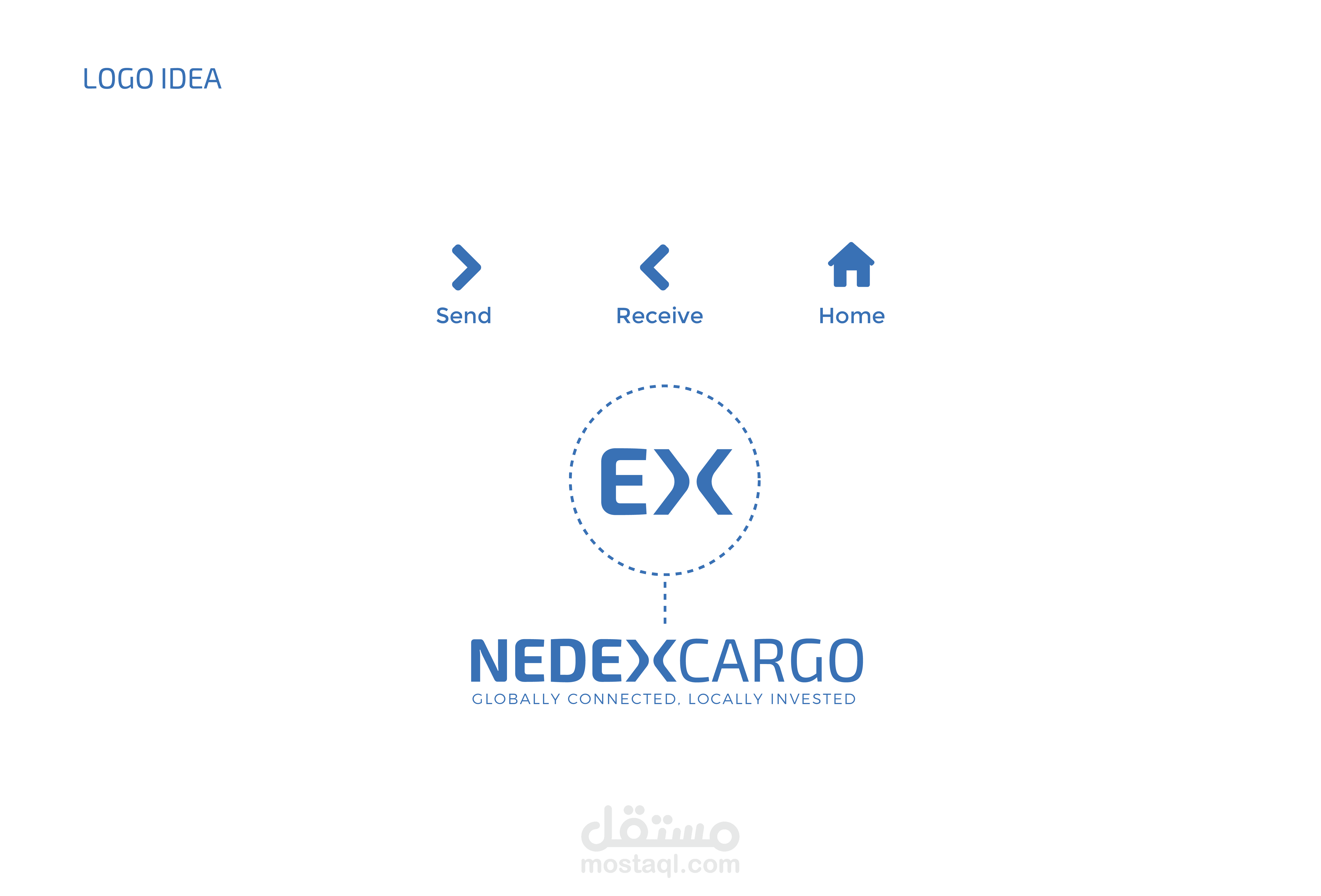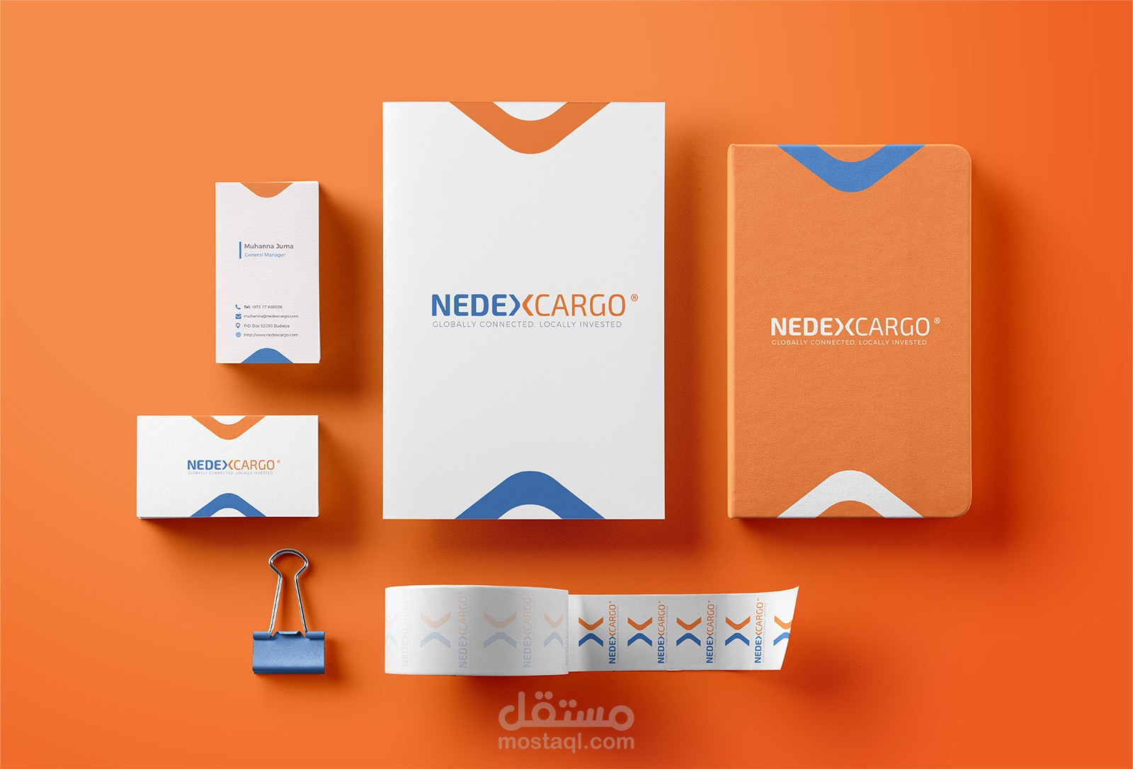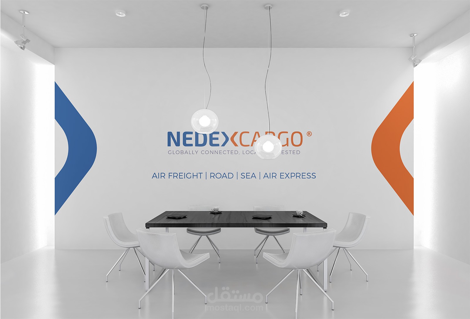 تصميم شعار وهوية بصرية لشركة Nedex Cargo للخدمات اللوجستية.