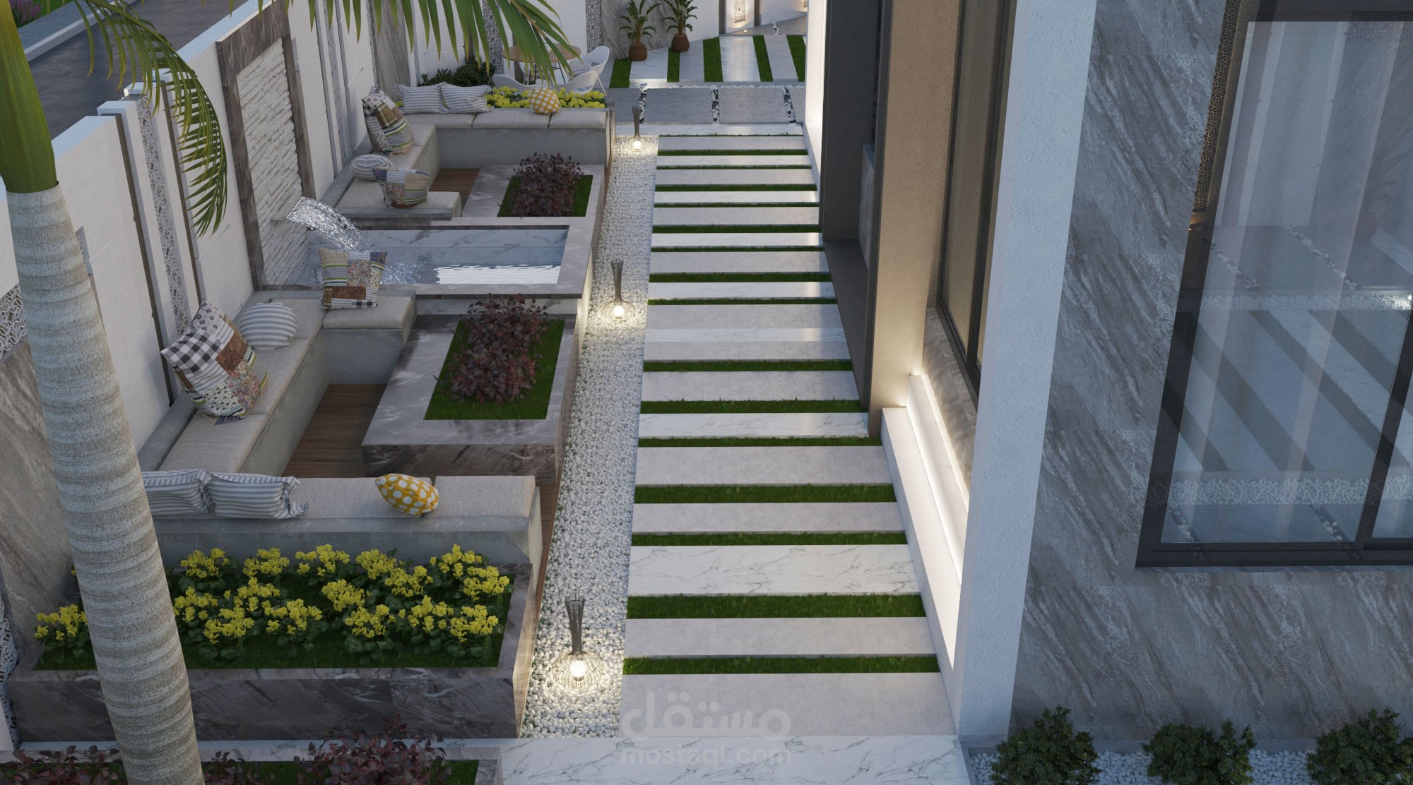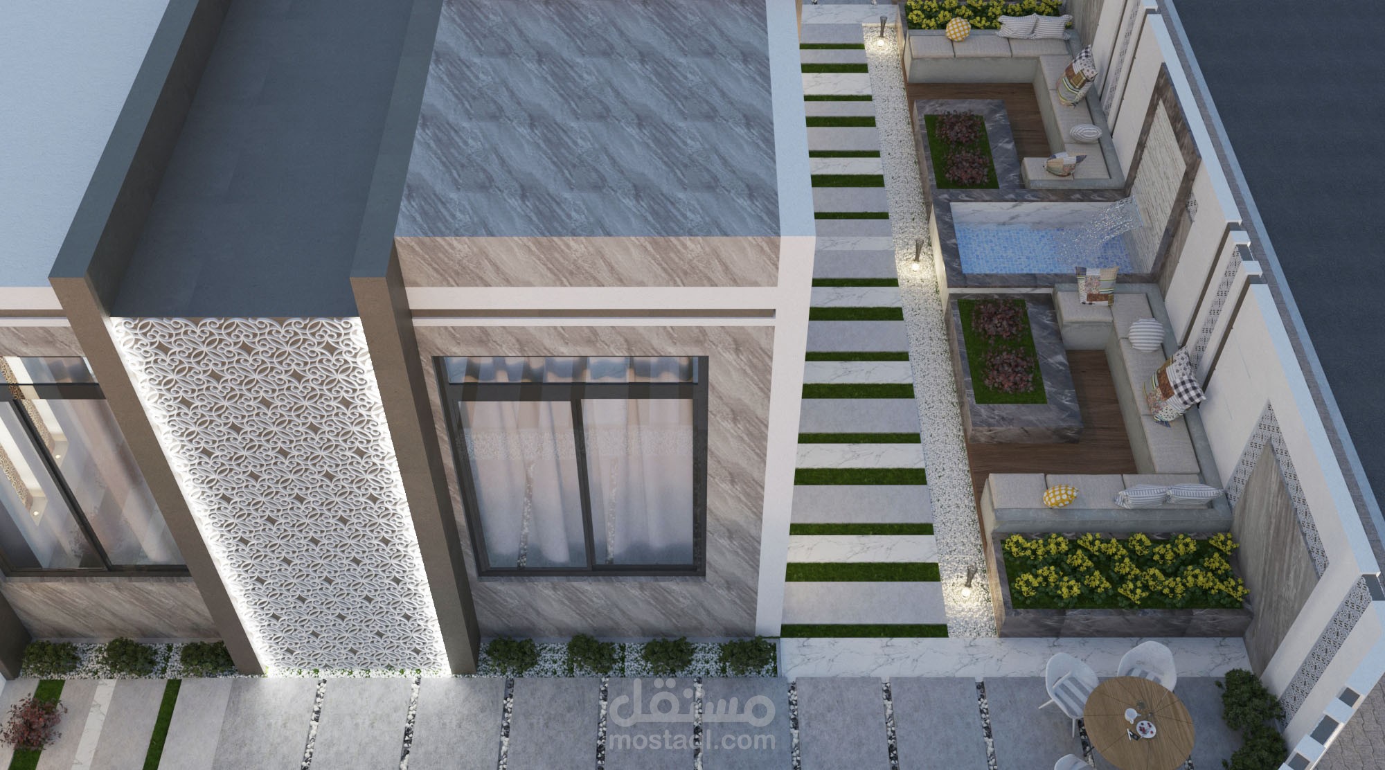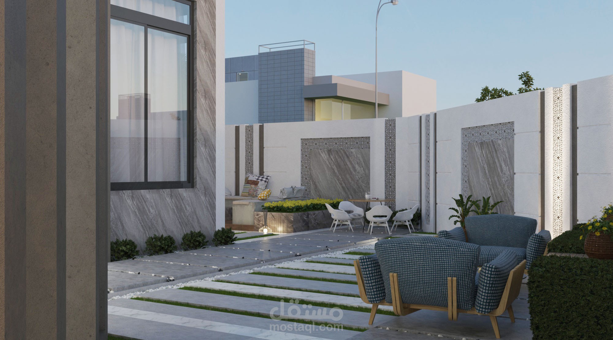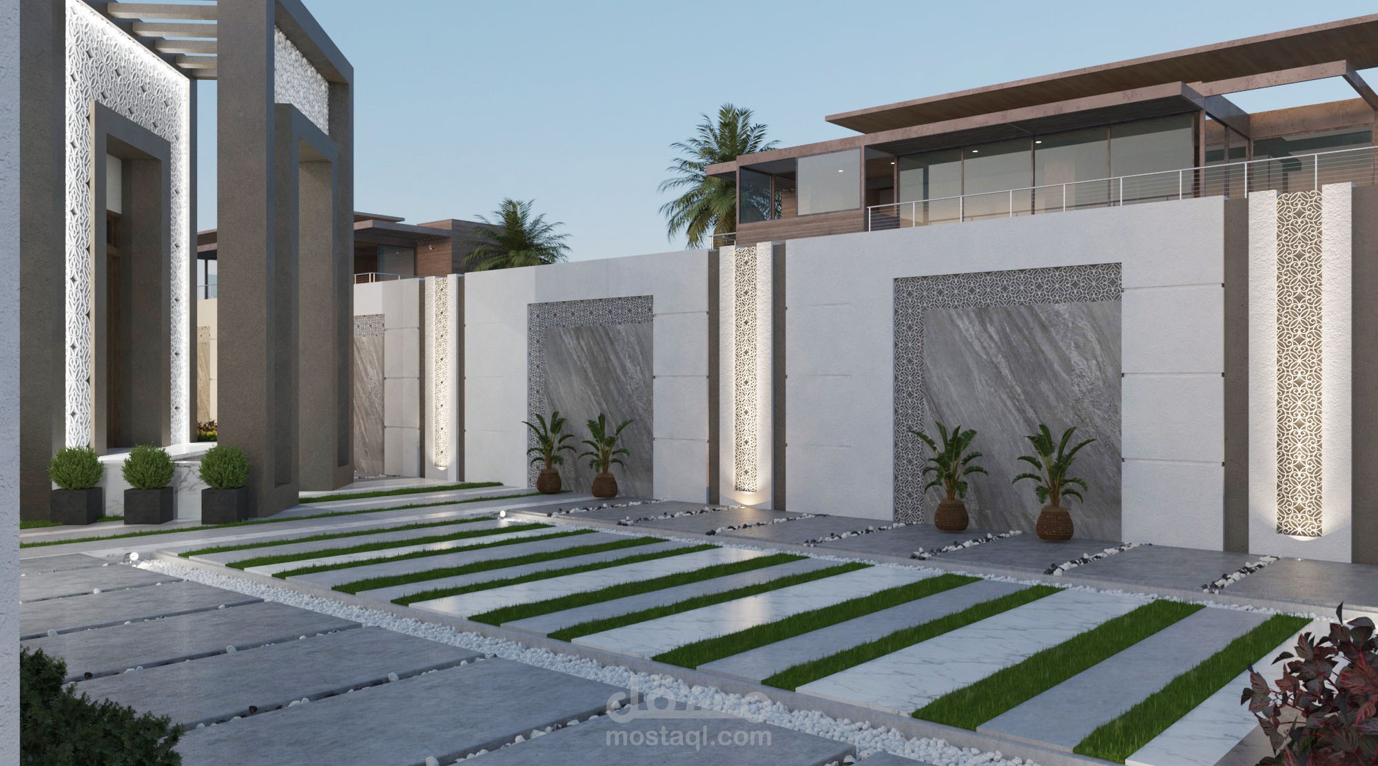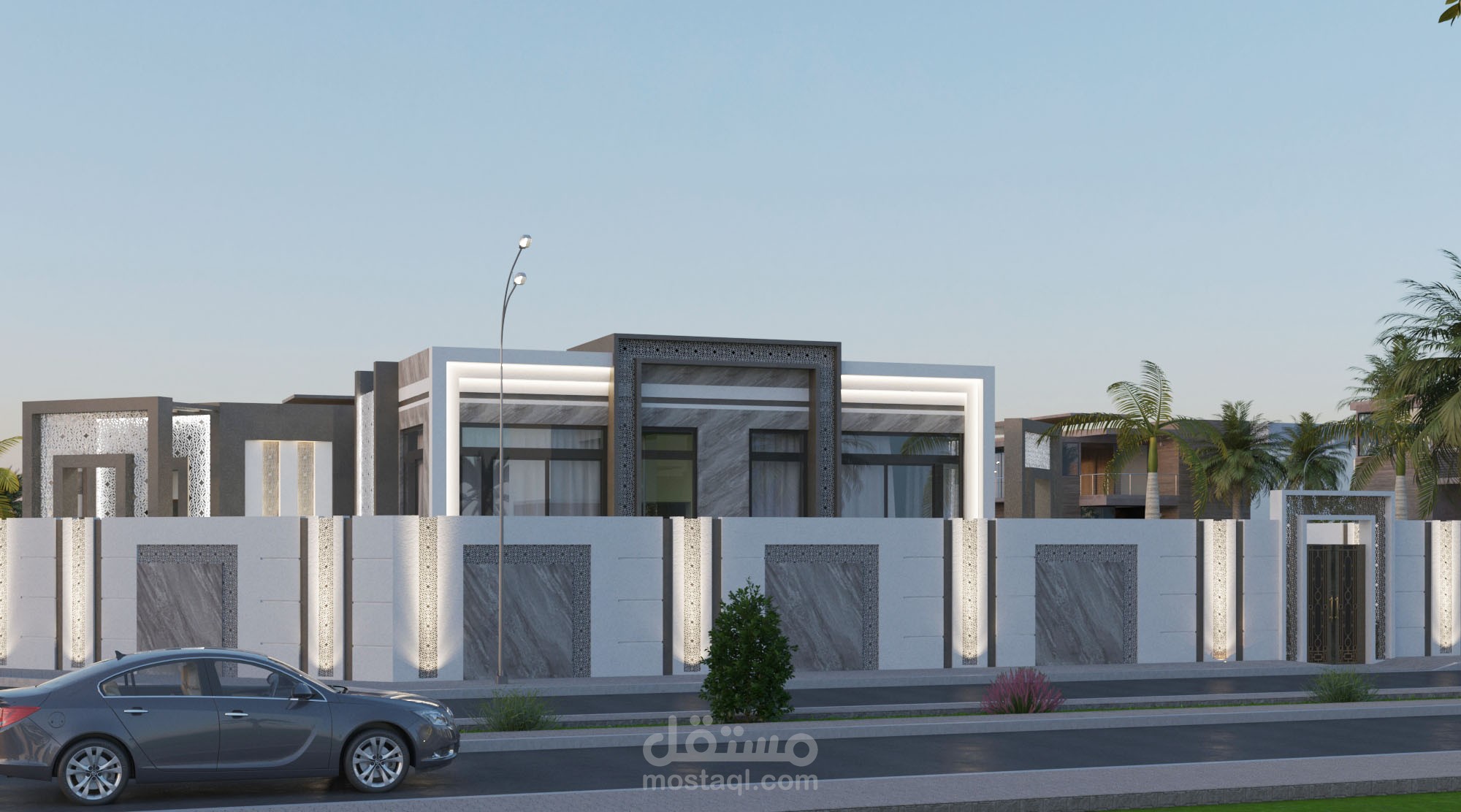 تصميم استراحة علي الطراز الاسلامي الحديث مع تصميم الحديقة والسور الخاص بالاستراحة