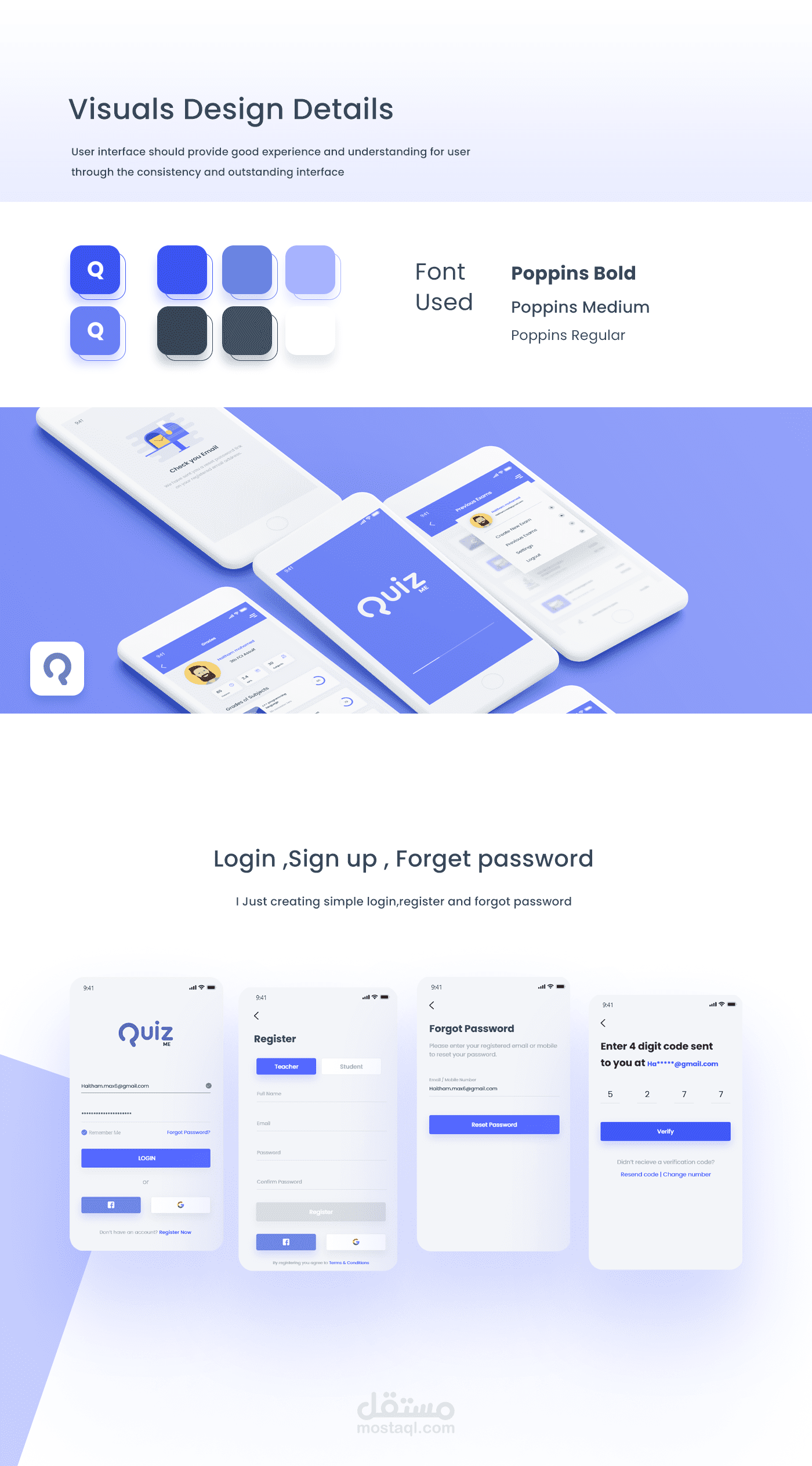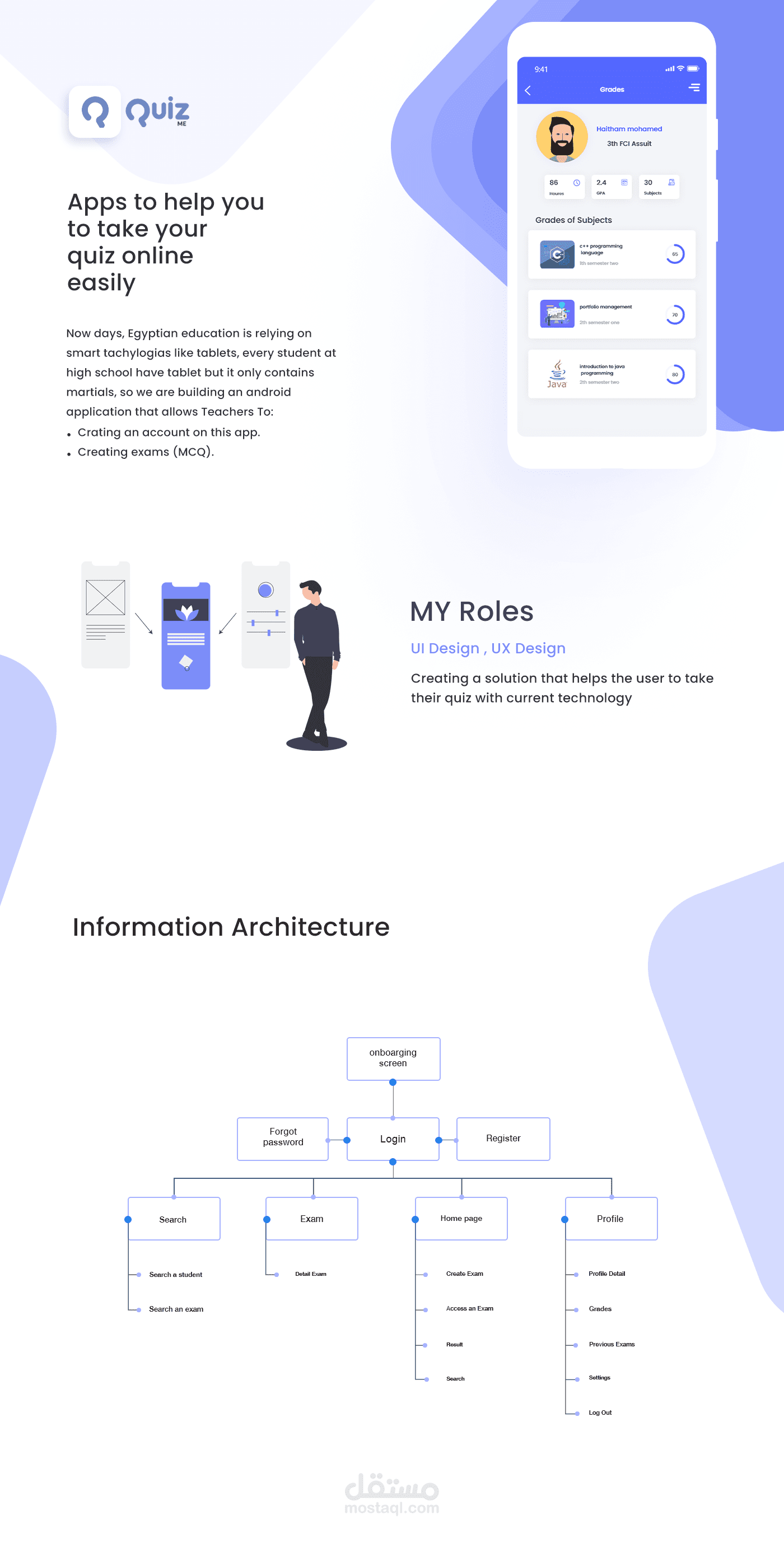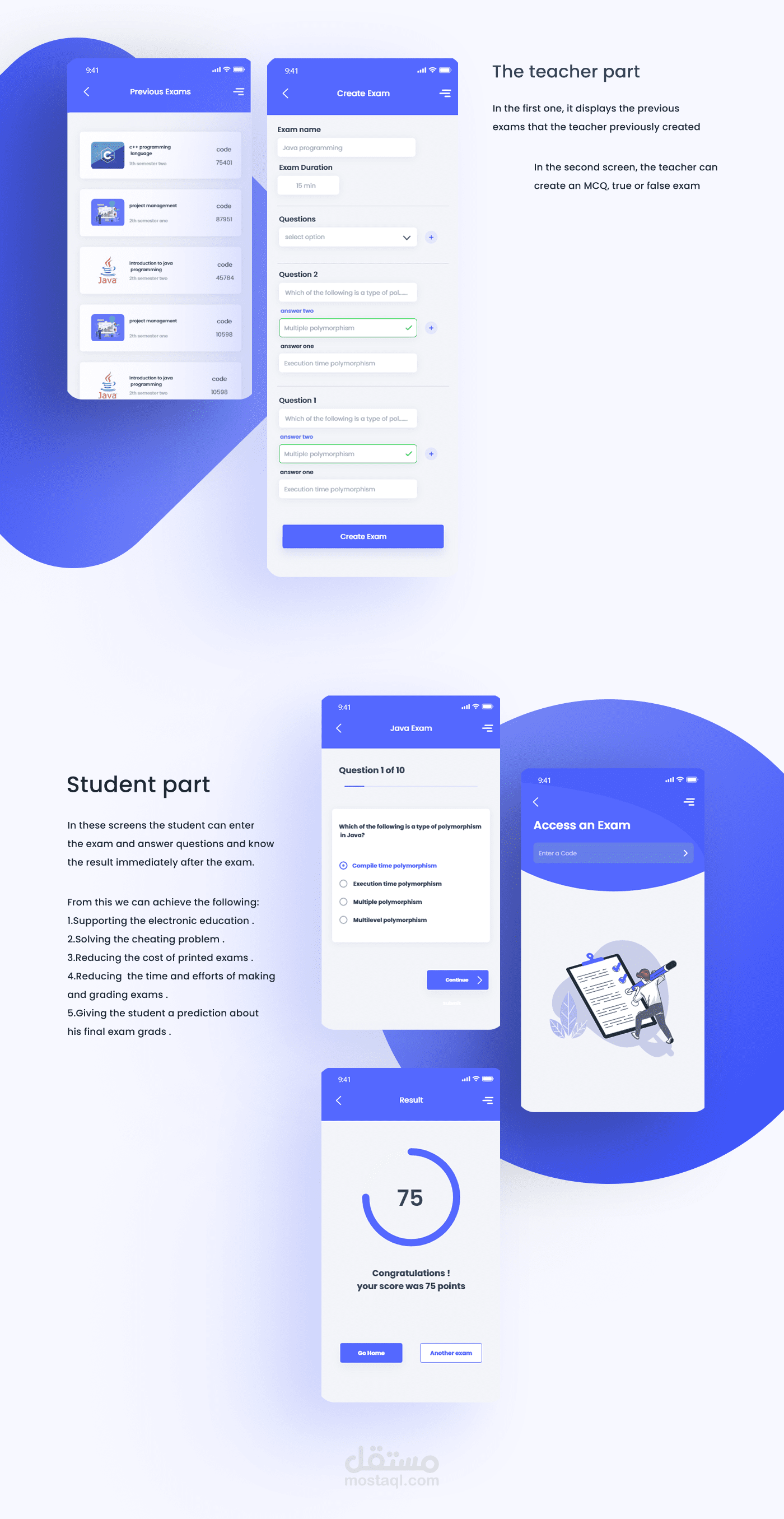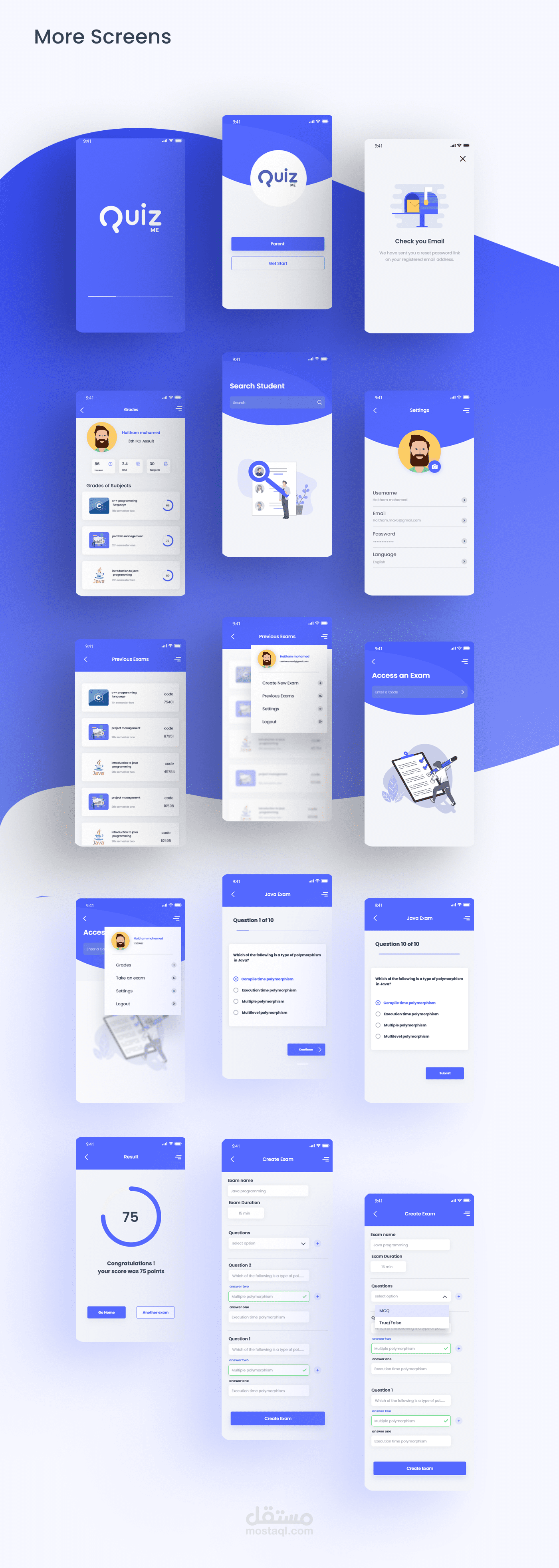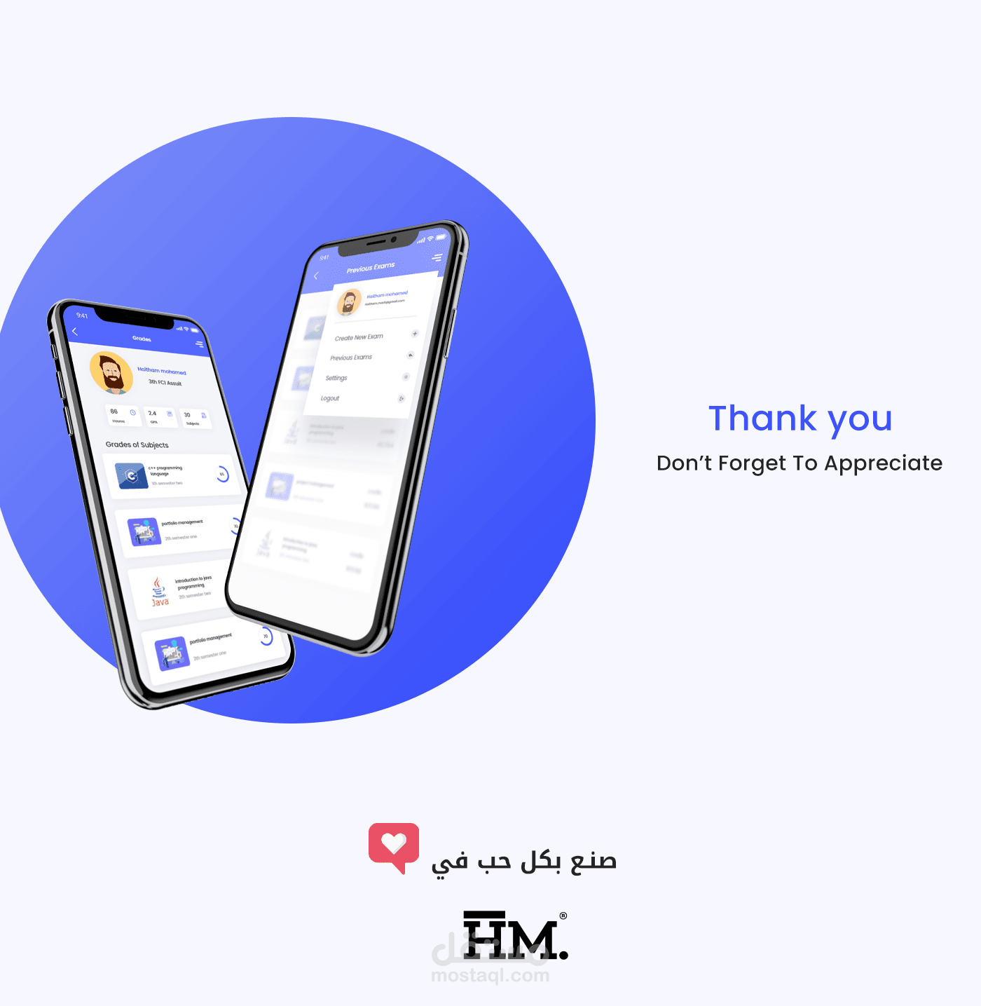 تصميم ابلكيشن موبايل لمنصه كويز وامتحانات اون لاين للطالب