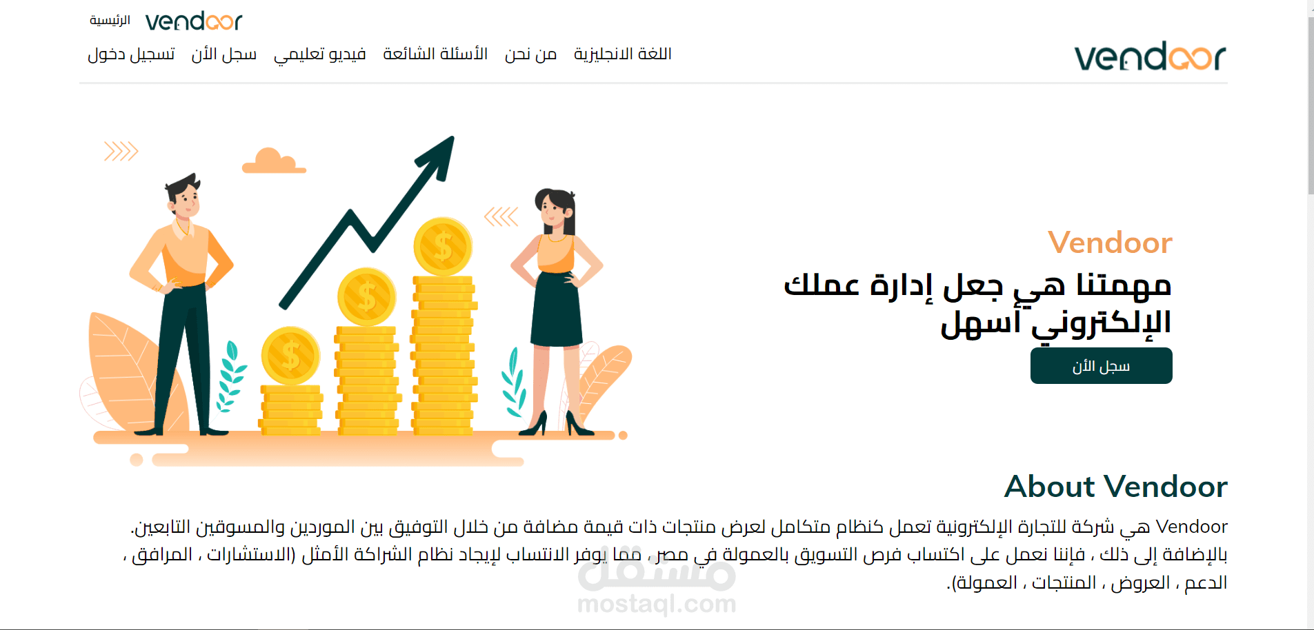 Vendoor هي شركة للتجارة الإلكترونية تعمل كنظام متكامل لعرض منتجات ذات قيمة مضافة من خلال التوفيق بين الموردين والمسوقين التابعين. بالإضافة إلى ذلك ، فإننا نعمل على اكتساب فرص التسويق بالعمولة في مصر ، مما يوفر الانتساب لإيجاد نظام الشراكة الأمثل (الاستشارات ، المرافق ، الدعم ، العروض ، المنتجات ، العمولة).