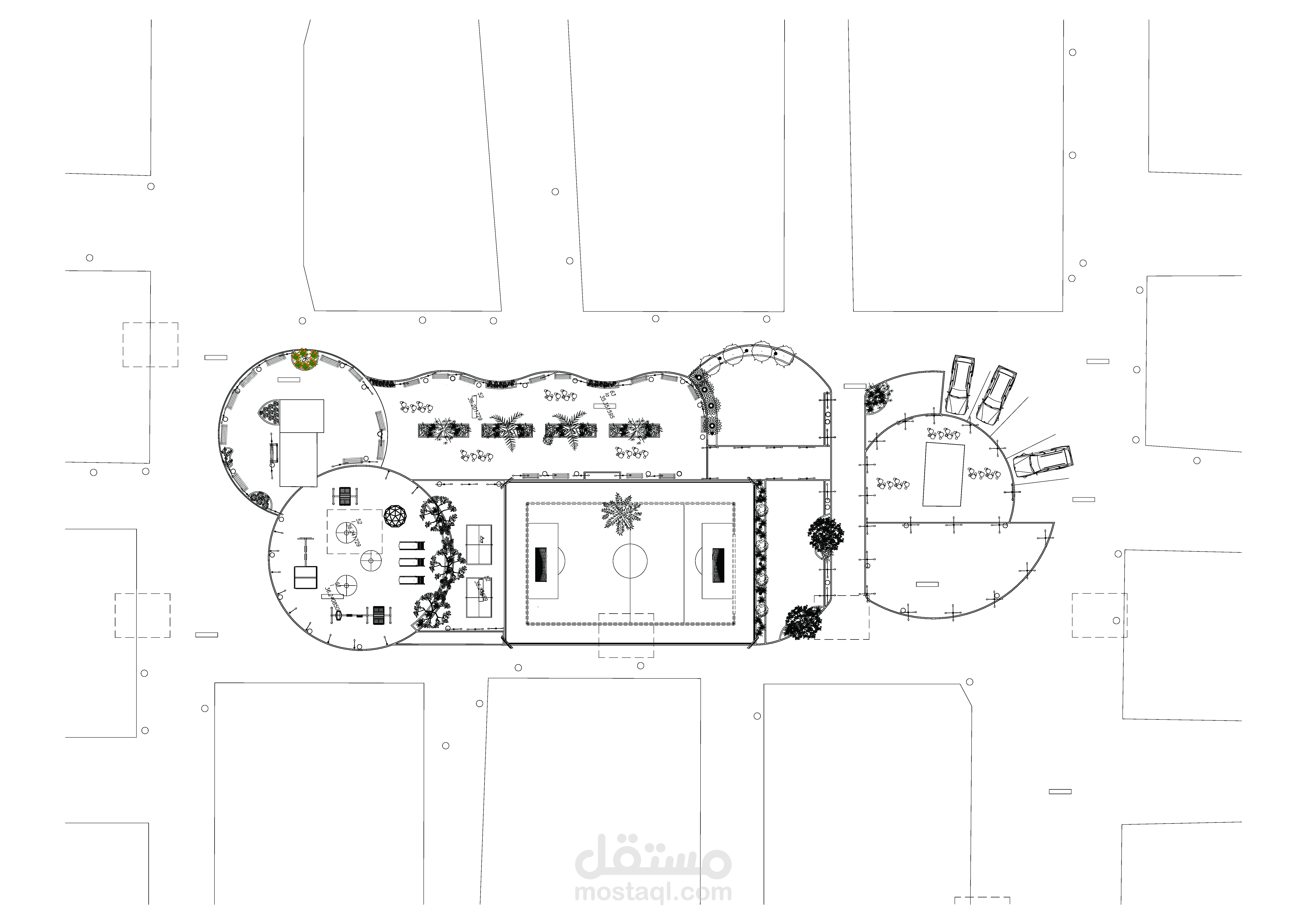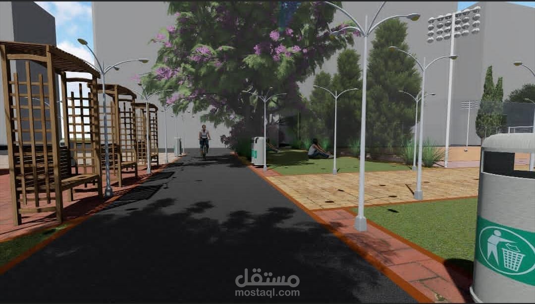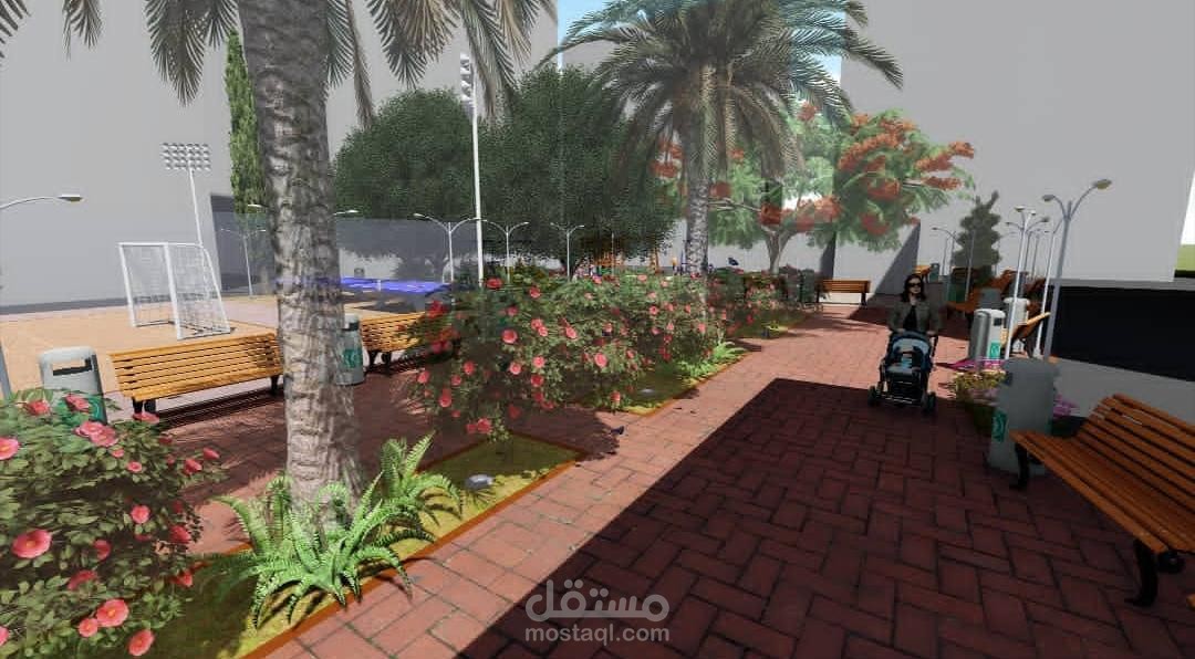لقد شاركت في تصميم حديقة بين مجموعة من أبراج سكنية على أرض مساحتها 2 دونم حيث تحتوي هذه الحديقة على ( منطقة جلوس , موقف سيارات , منطقة لعب أطفال , ملعب , ممرات ).