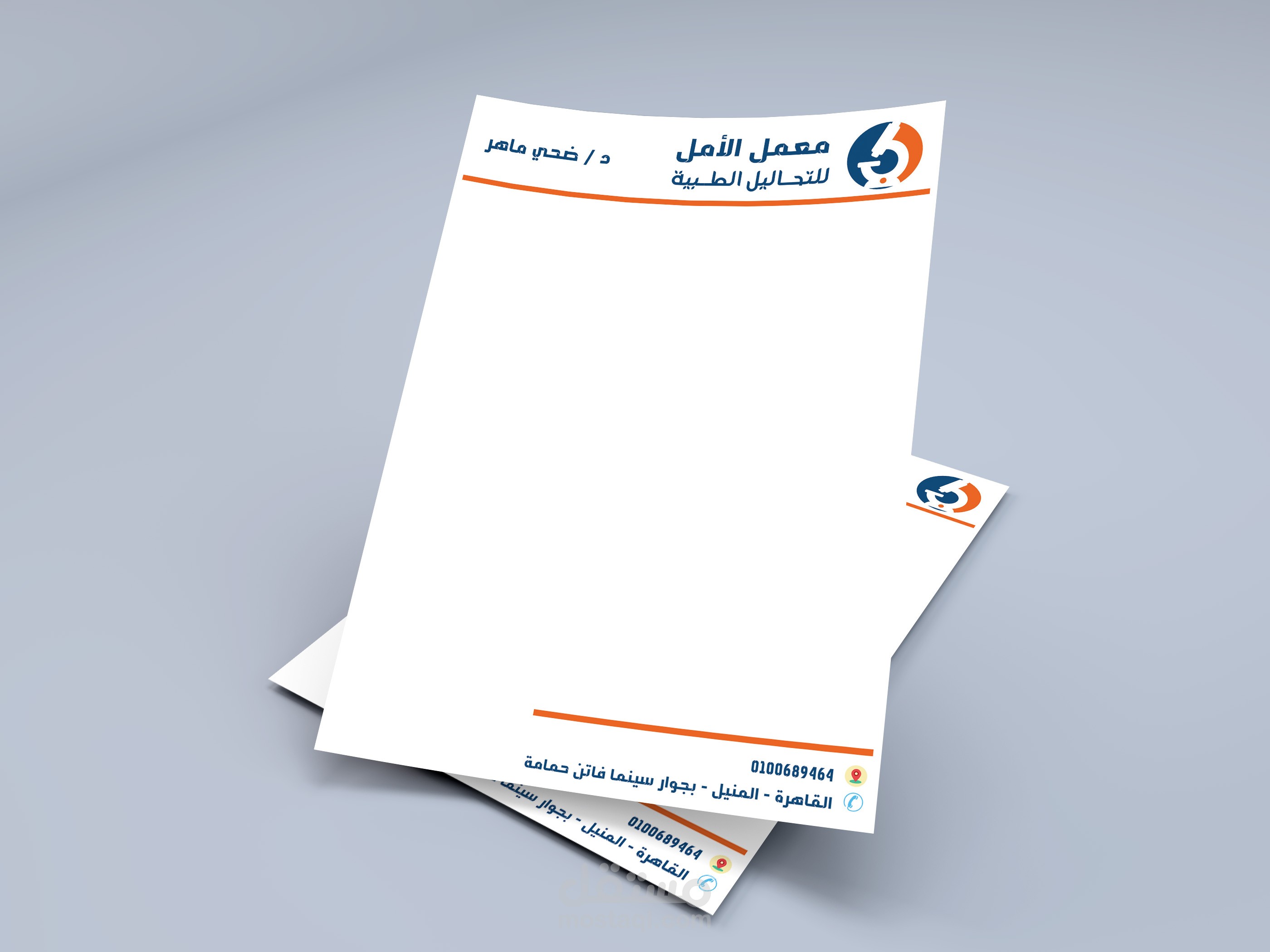 تصميم فولدر لمعمل الأمل وعرضه علي Mockup