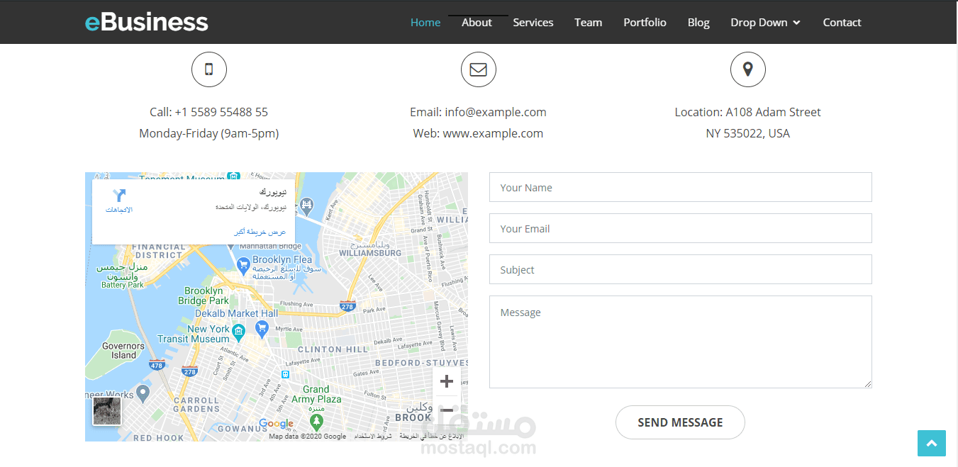 تصميم لشركة اعمال وتسويق ،الرئيسية وتعريف بالشركة و نبذة عن الشركة ،التعريف بخدمات الشركة ، اتصال بنا ، Google Map ، التعريف بمحتوى الشركة ،