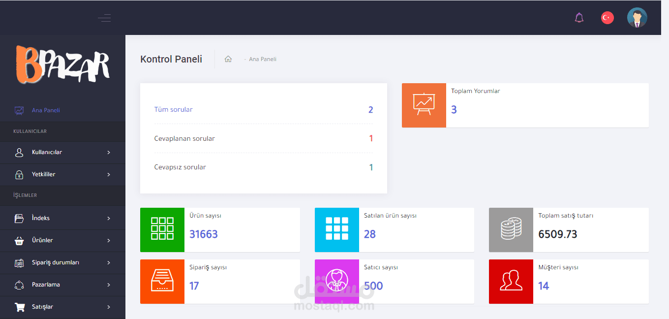 - لوحة تحكم خاصة بالمتجر