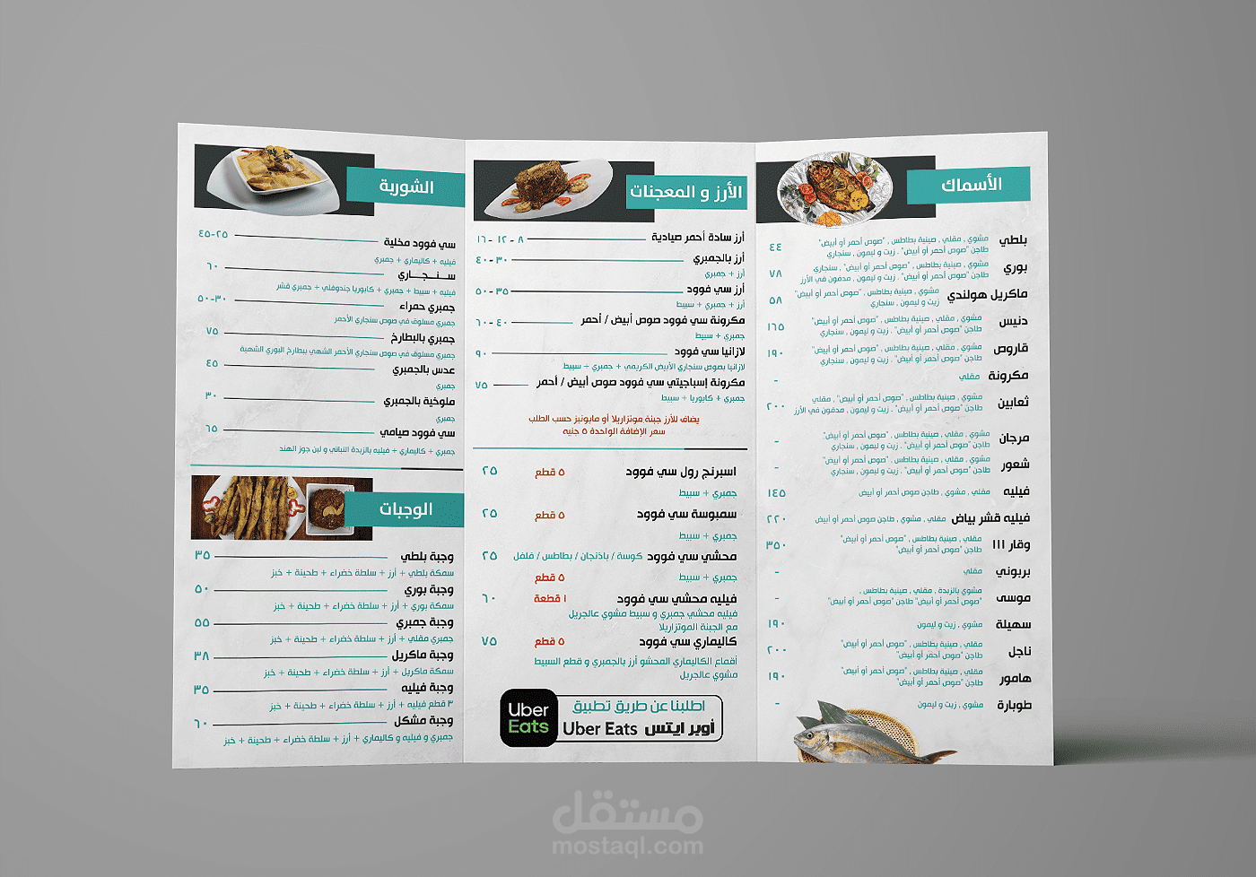 تصميم بروشور منيو ( قائمة طعام ) لمحل أسماك