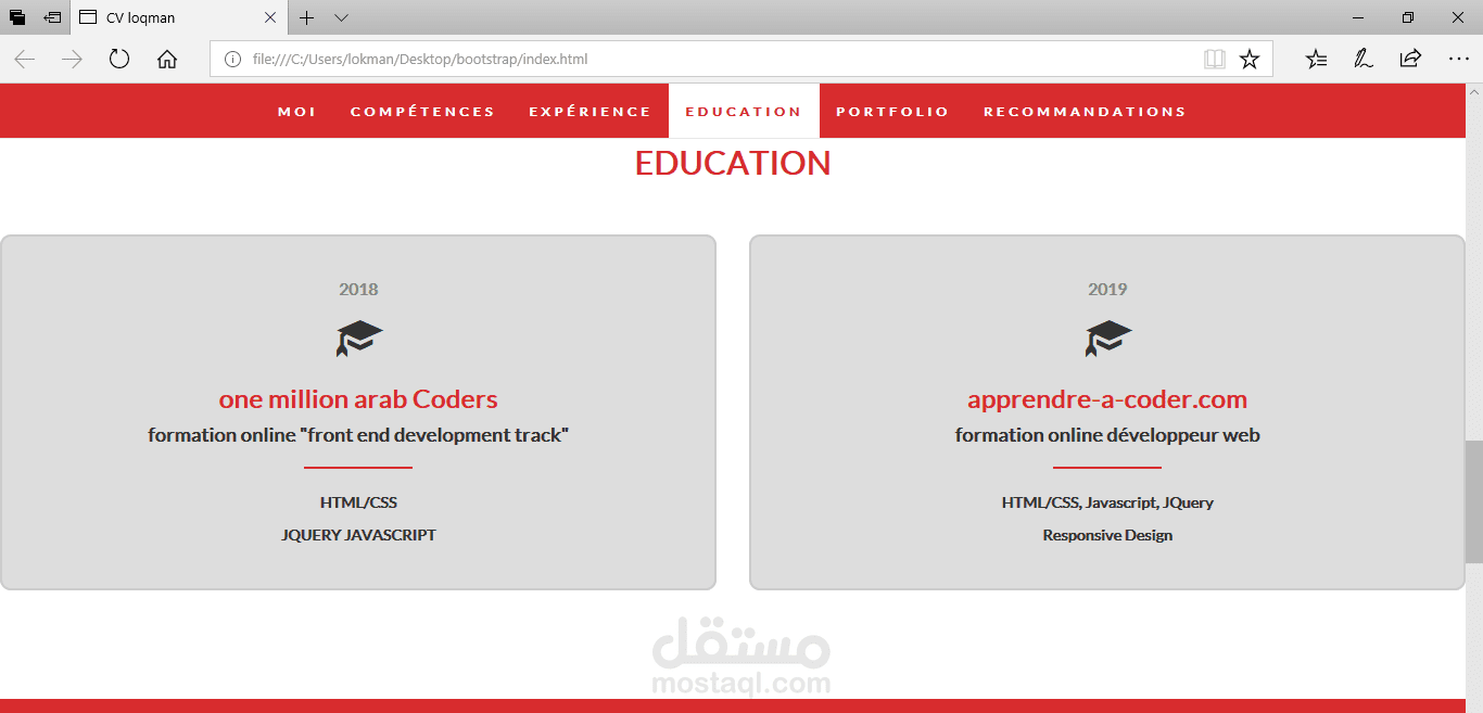موقع جميل جدا خاص لعرض الاعمال والمهارات متجاوب مع جميع الشاشات كود صافي