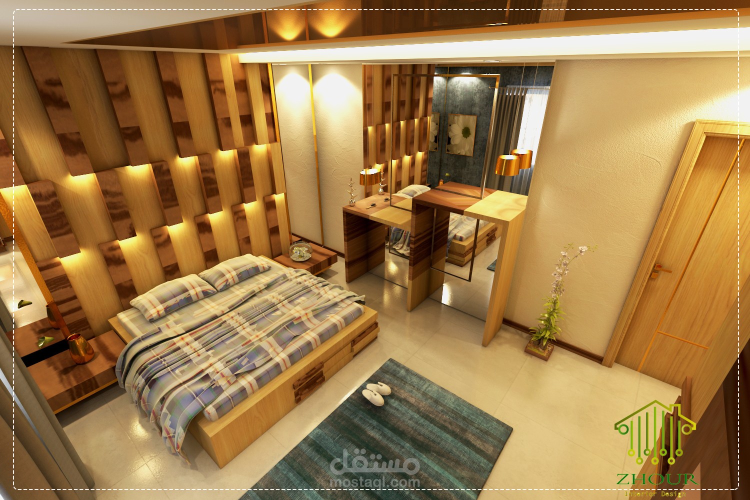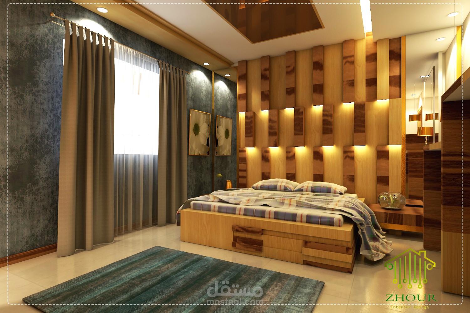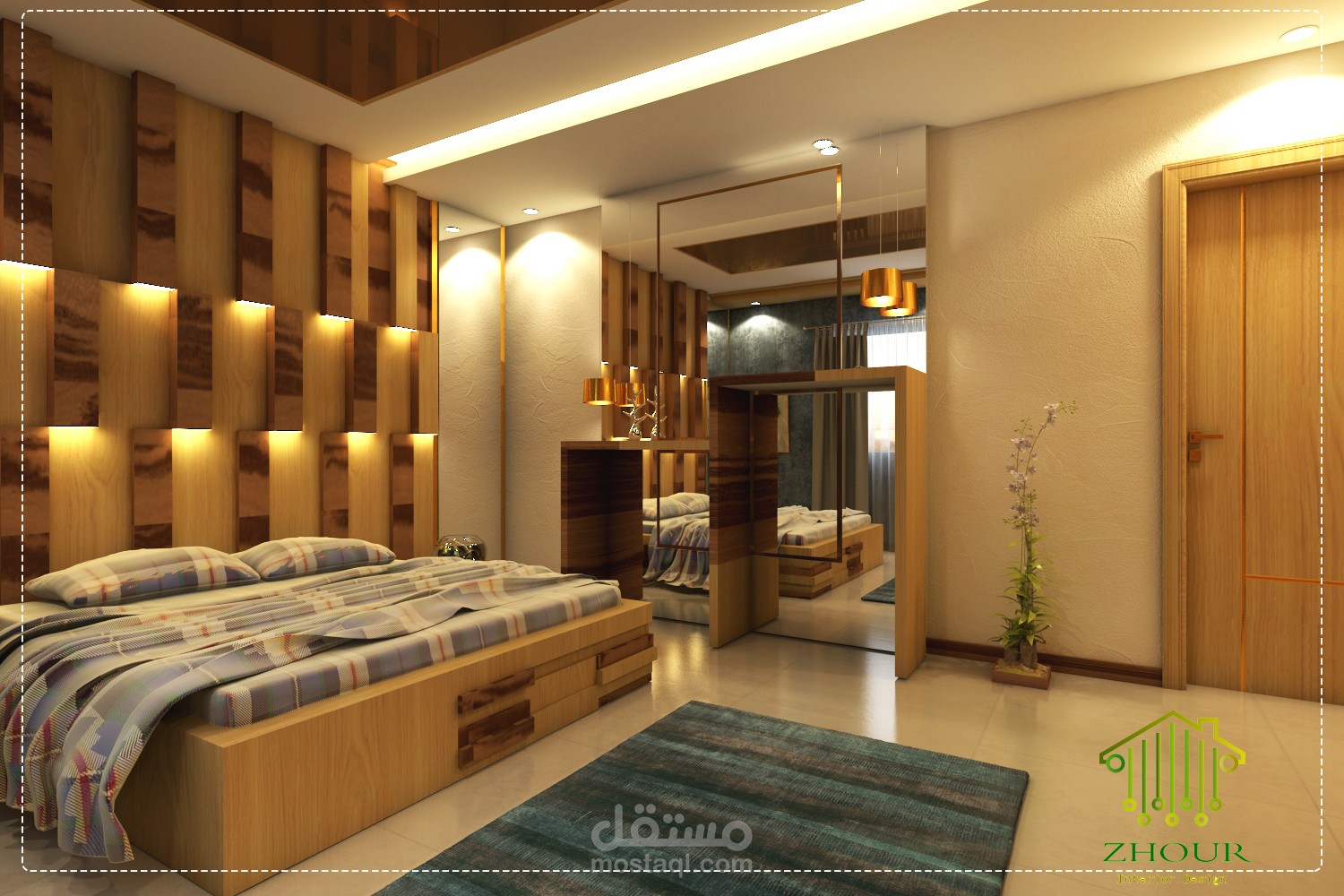 غرفة نوم ماستر حيث الألوان الراقية والمناسبة والتصميم الراقي والمناسب .