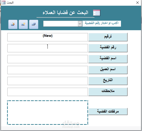 والبحث عنها ورفع ملفات القضايا والرجوع لها حسب الطلب
