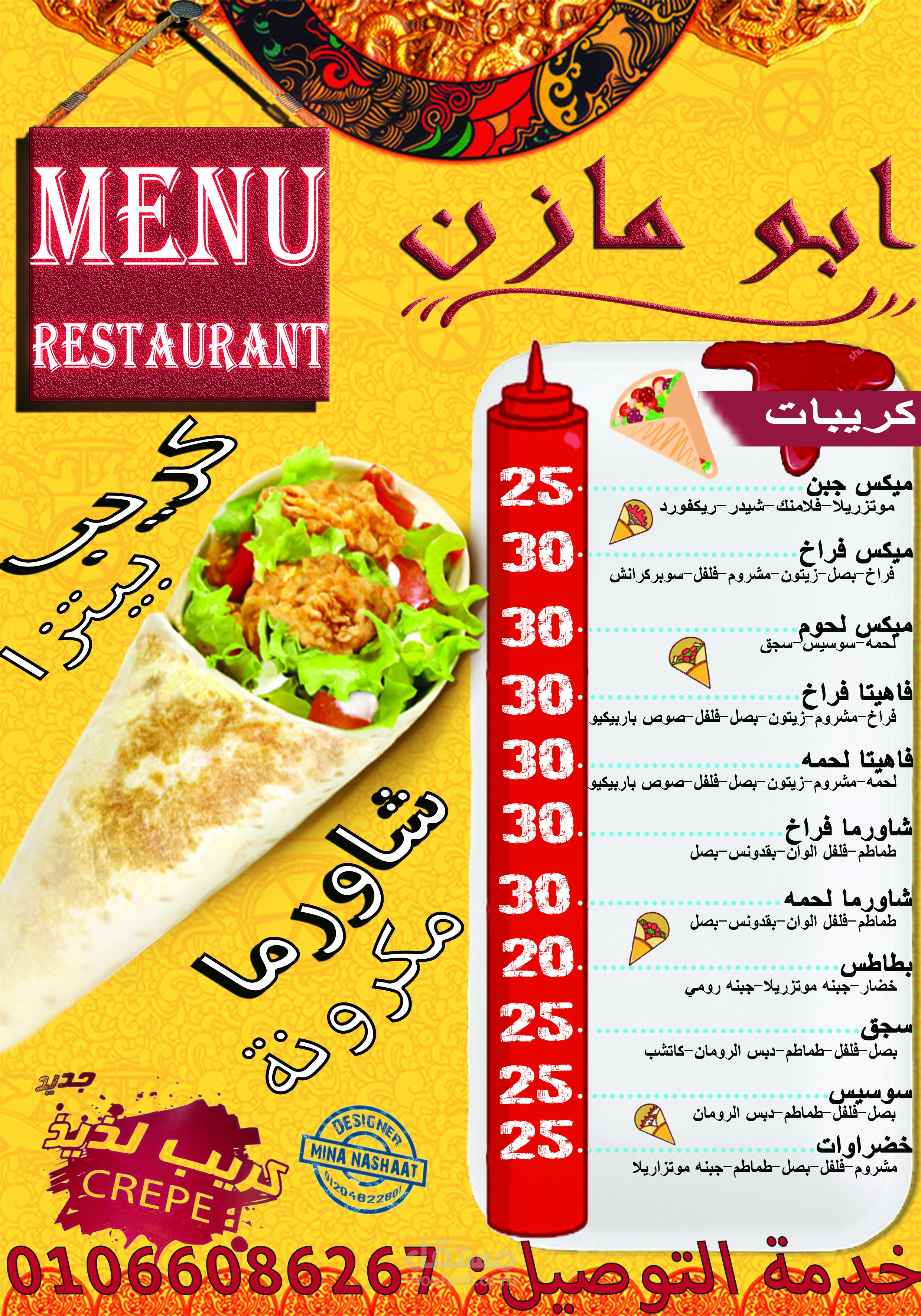 هذا تصميم تم لمطعم مصري شرقي بالوانه الشرقيه و كثرة بهرجته و لمختلف وجباته