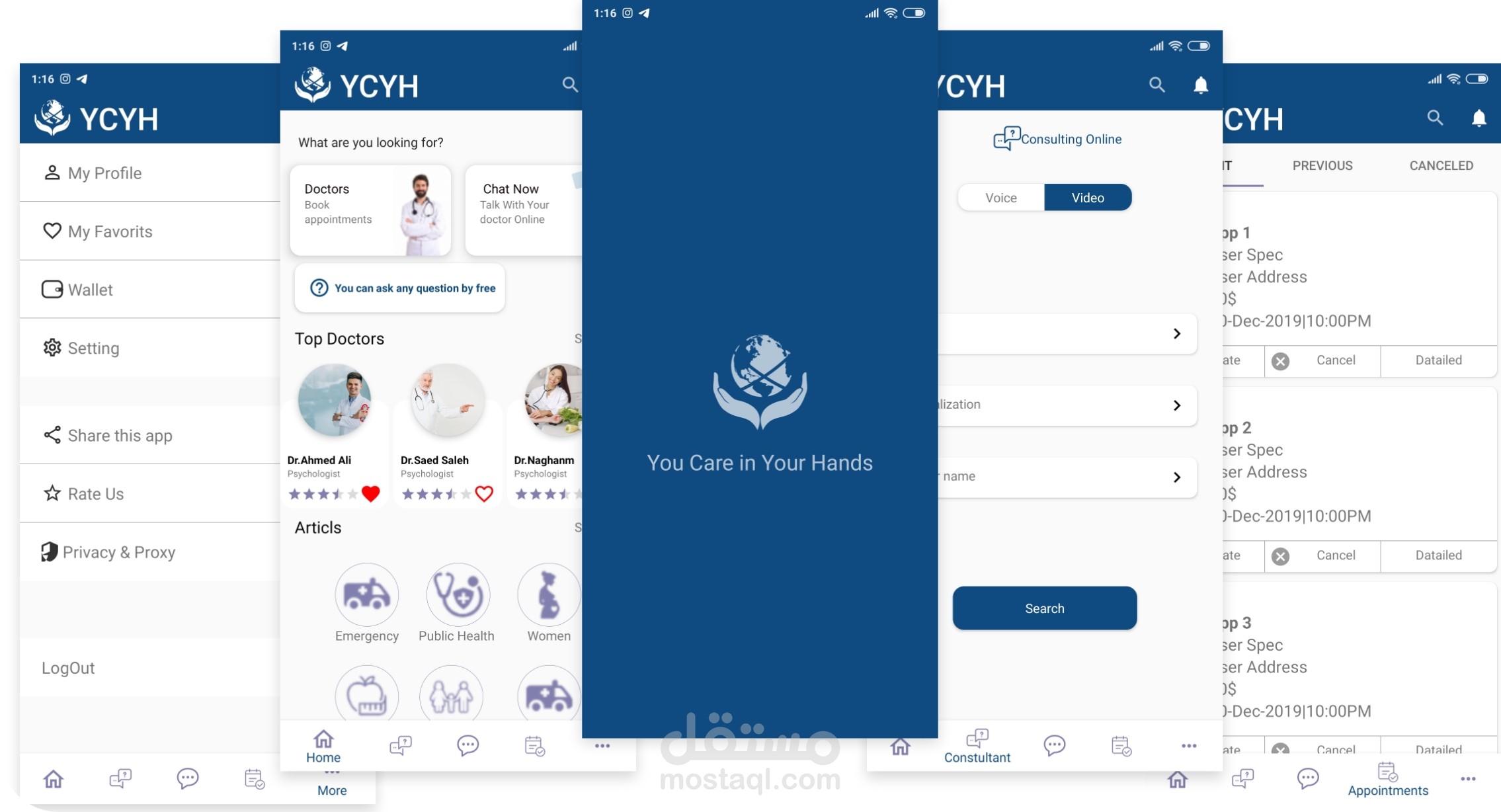 تطبيق يمكن المستخدمين من تصفح الاطباء الموجودين بالتطبيق ويمكنه التواصل معهم اما مكالمه فيديو او صوتيه او يمكنه التواصل معهم مسجات وامكانيه السؤال عن استشاره طبيه