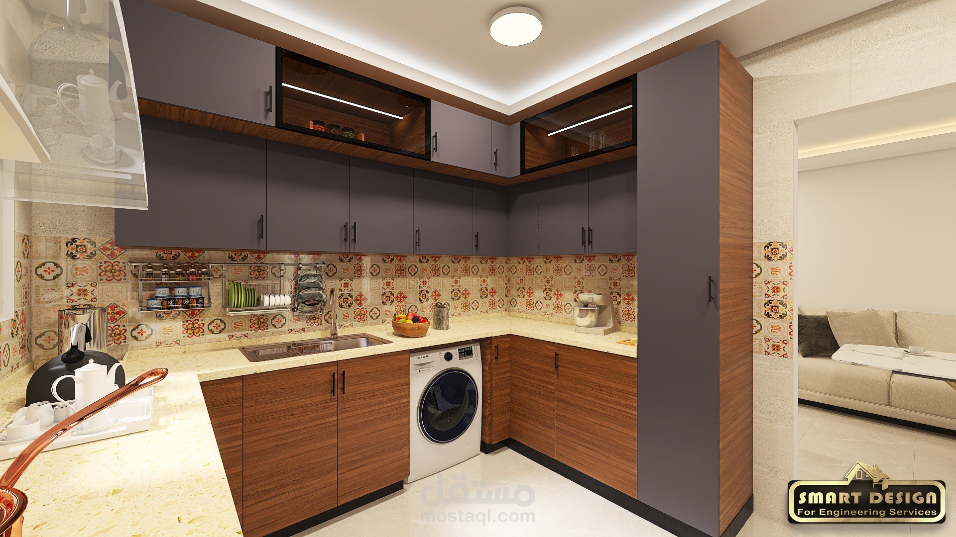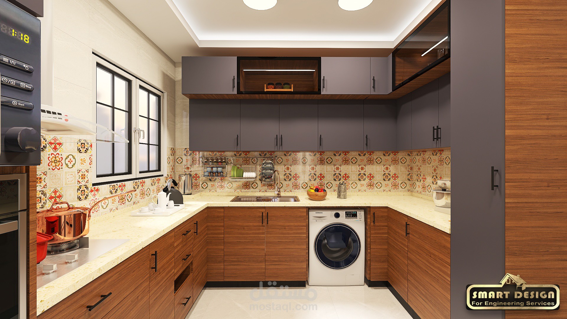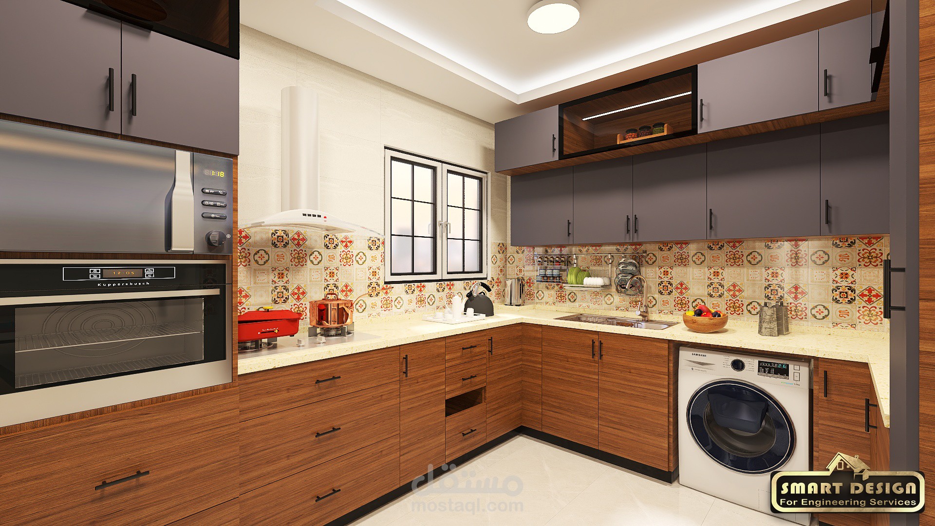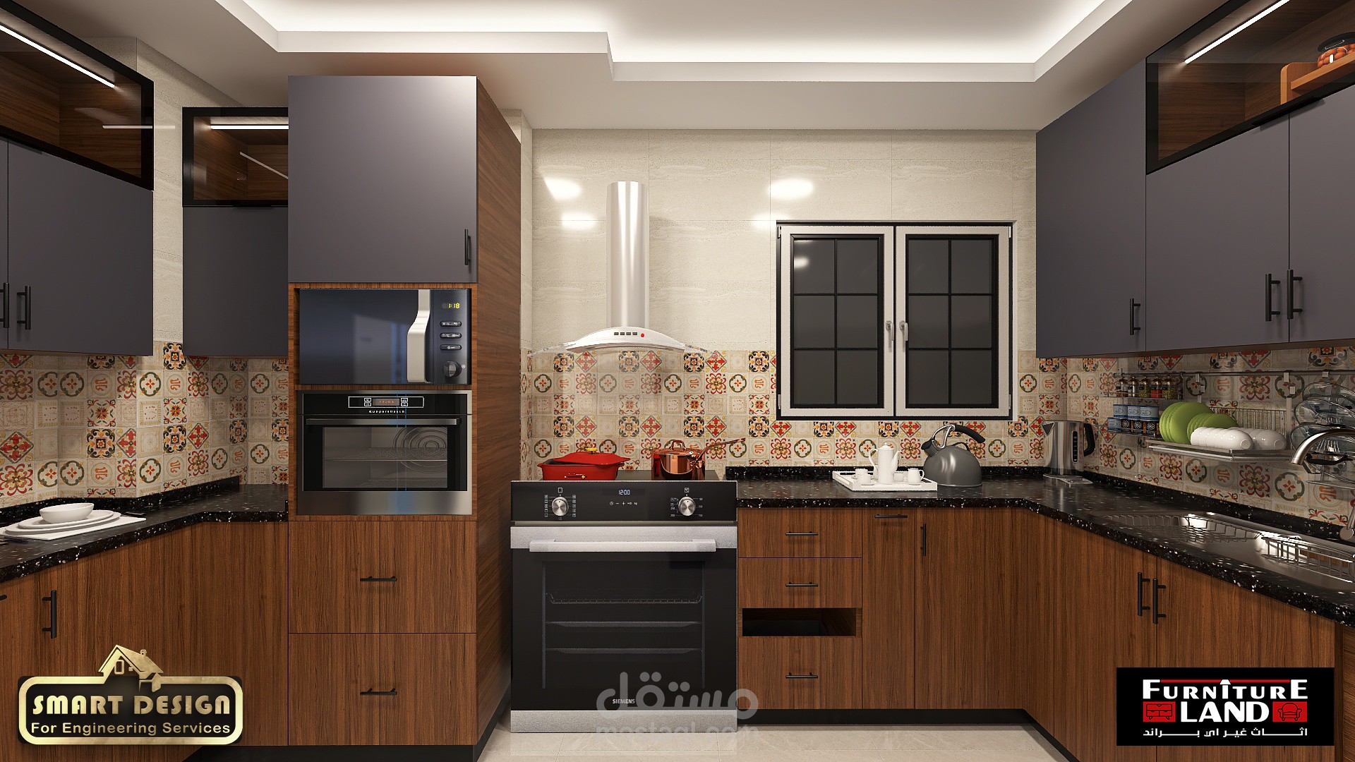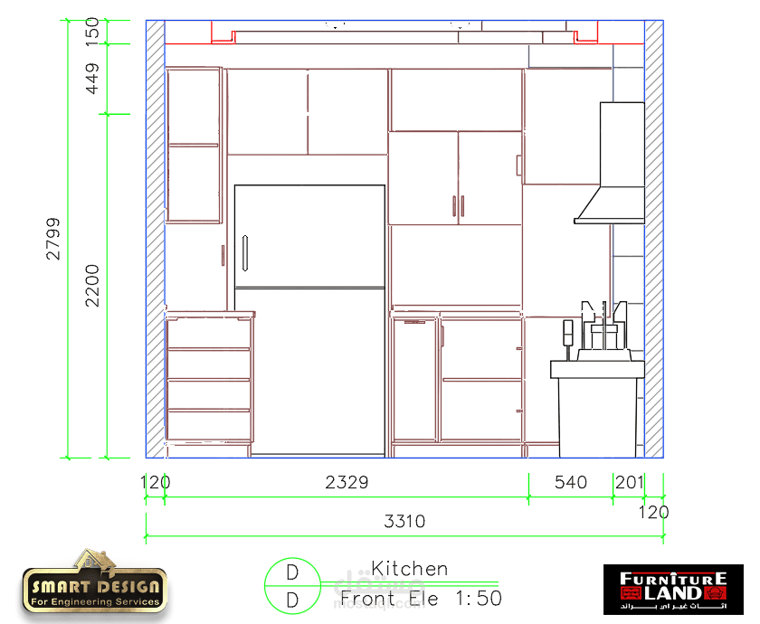 تصميم معمارى لمطبخ مودرن شامل رسومات 2D ورسومات 3D وشامل تفاصيل الابعاد والمقاسات التفصيلية للرسومات التنفيذية