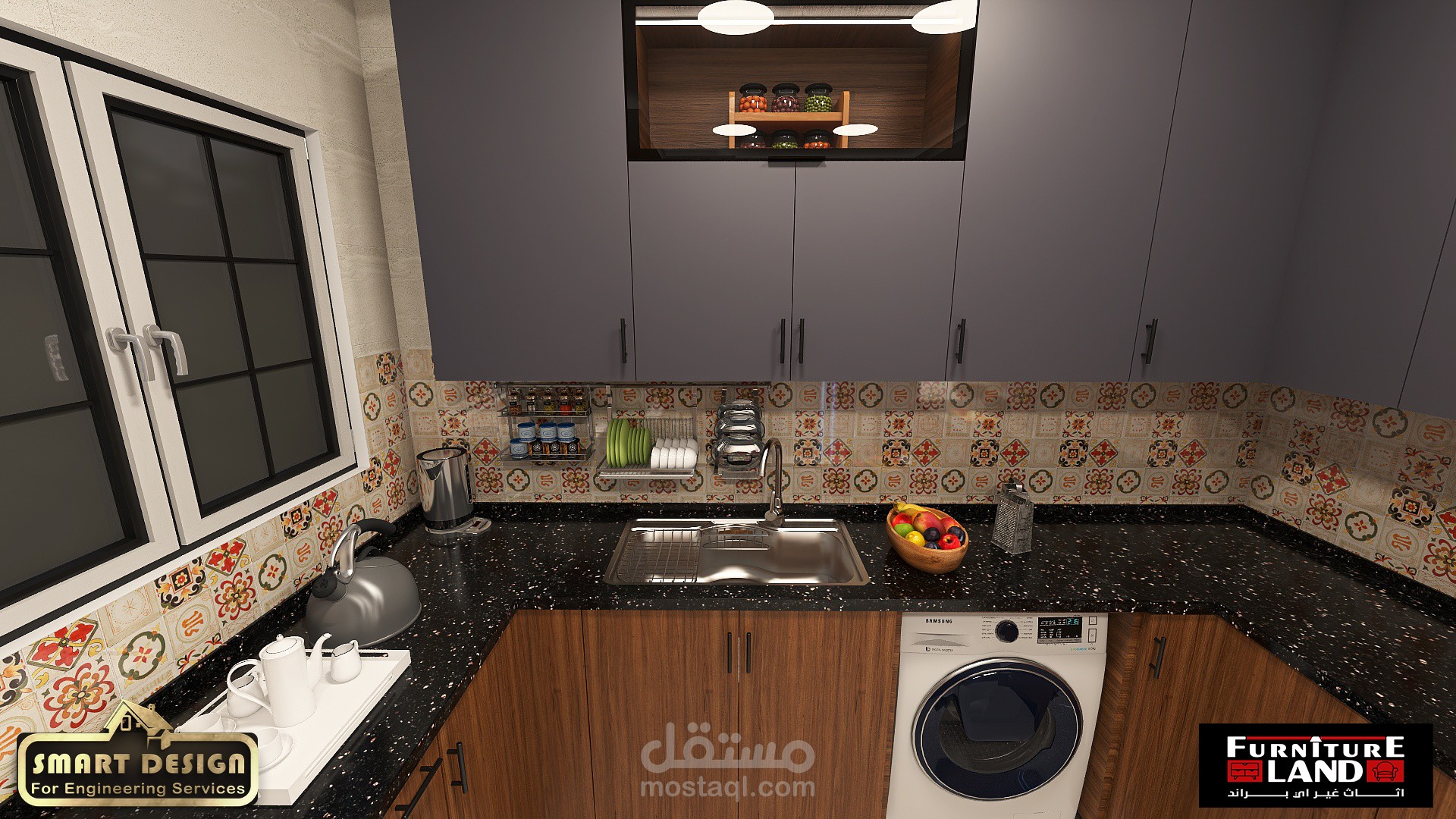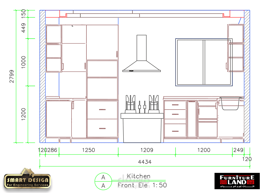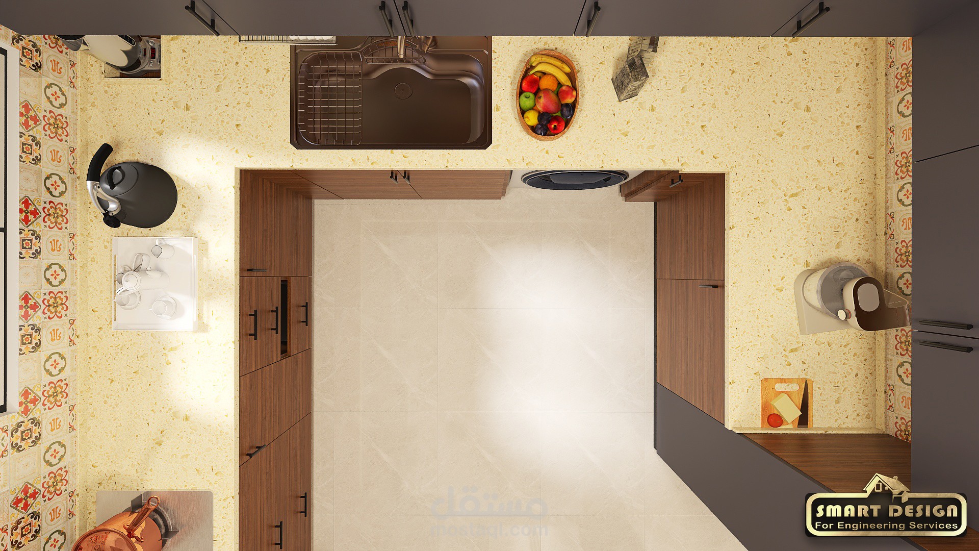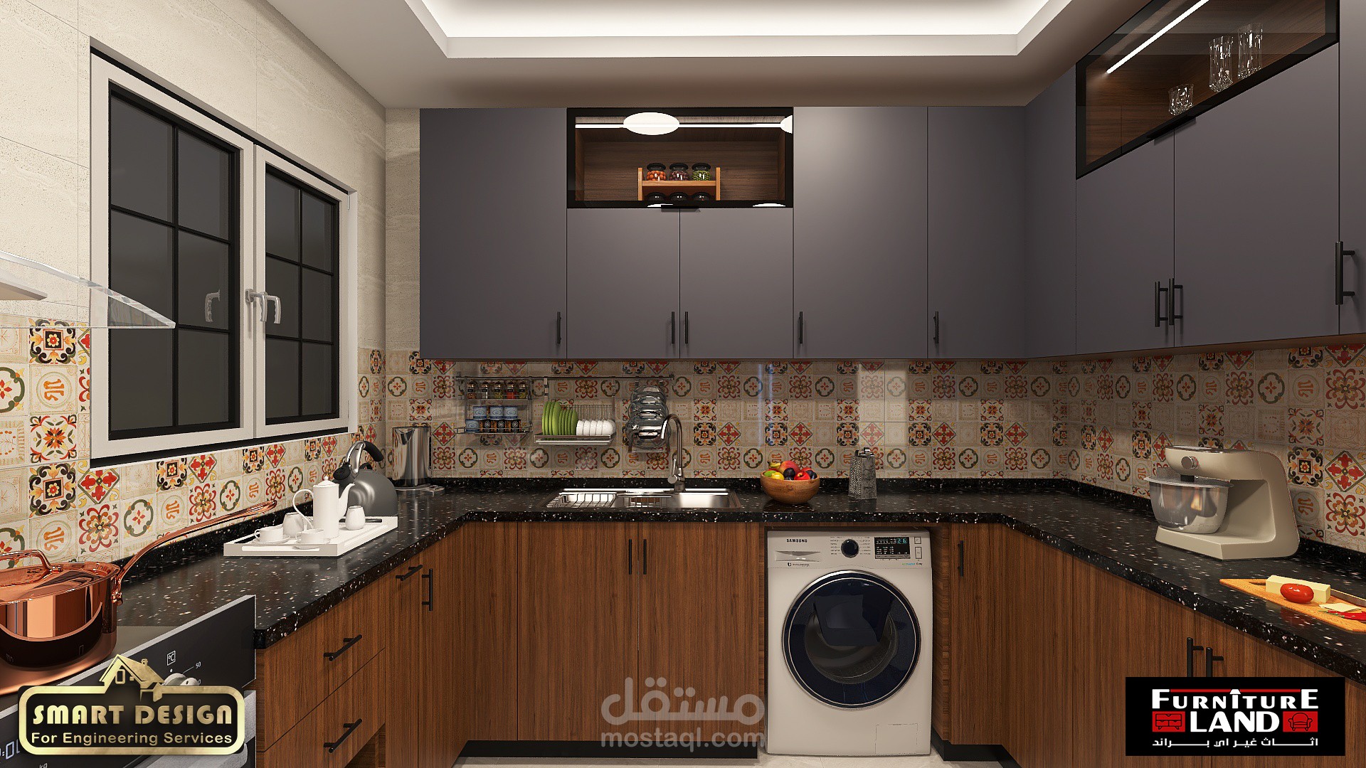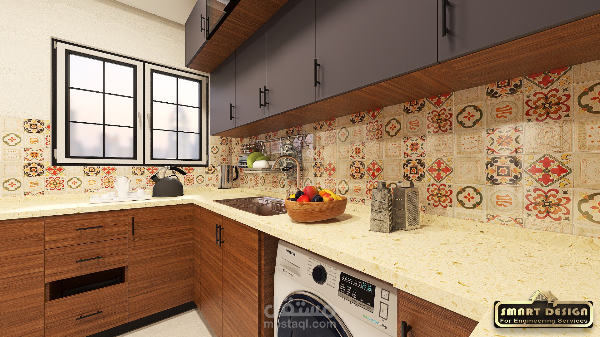 تصميم معمارى لمطبخ مودرن شامل رسومات 2D ورسومات 3D وشامل تفاصيل الابعاد والمقاسات التفصيلية للرسومات التنفيذية
