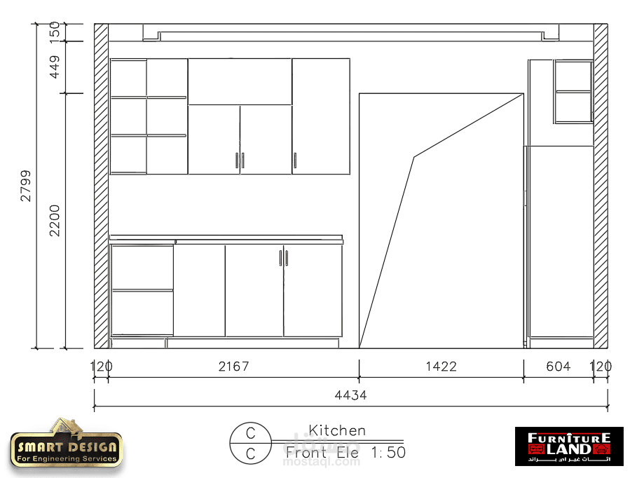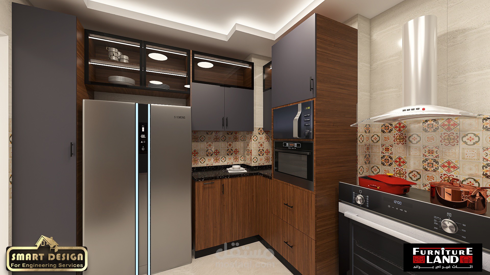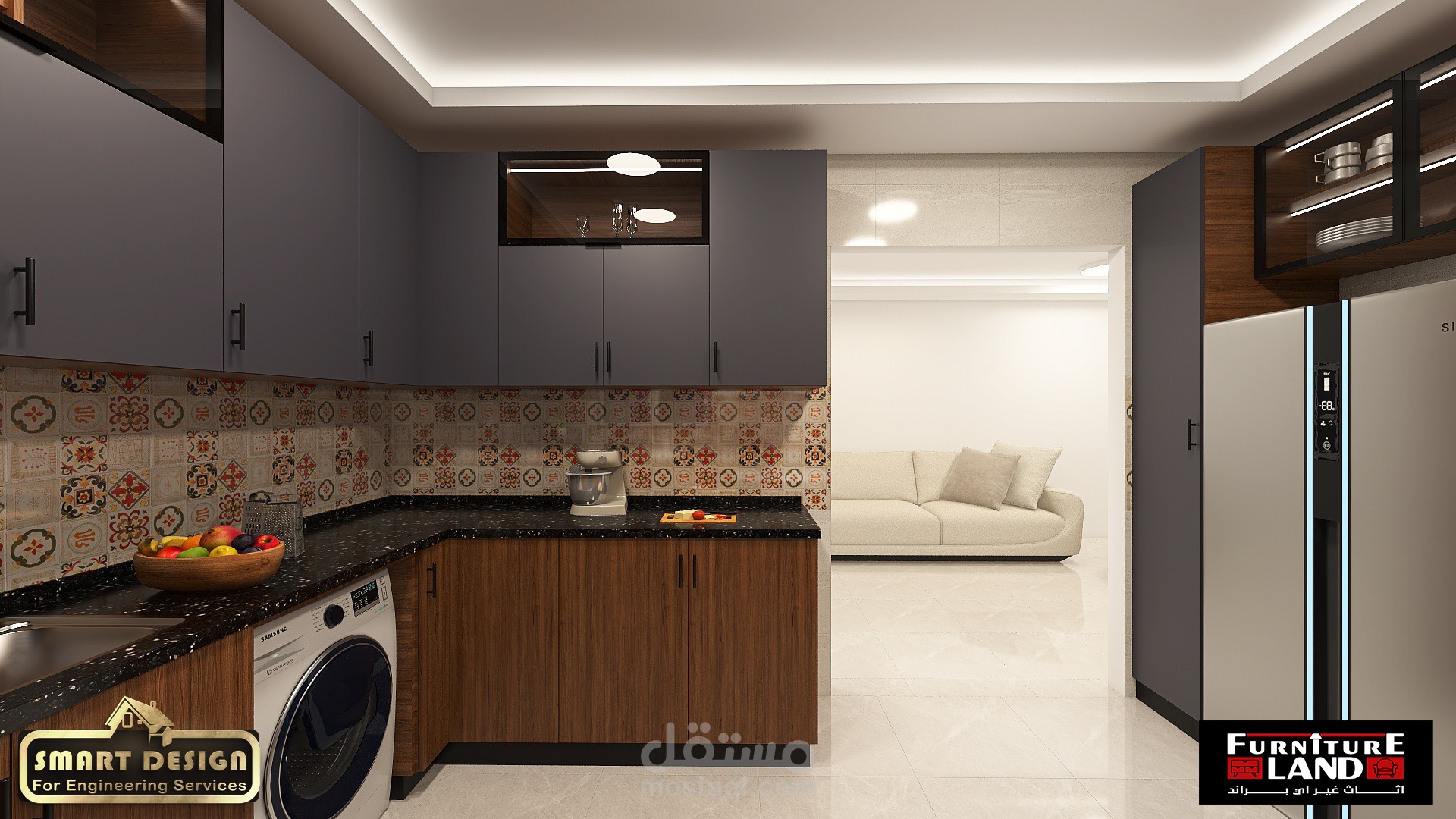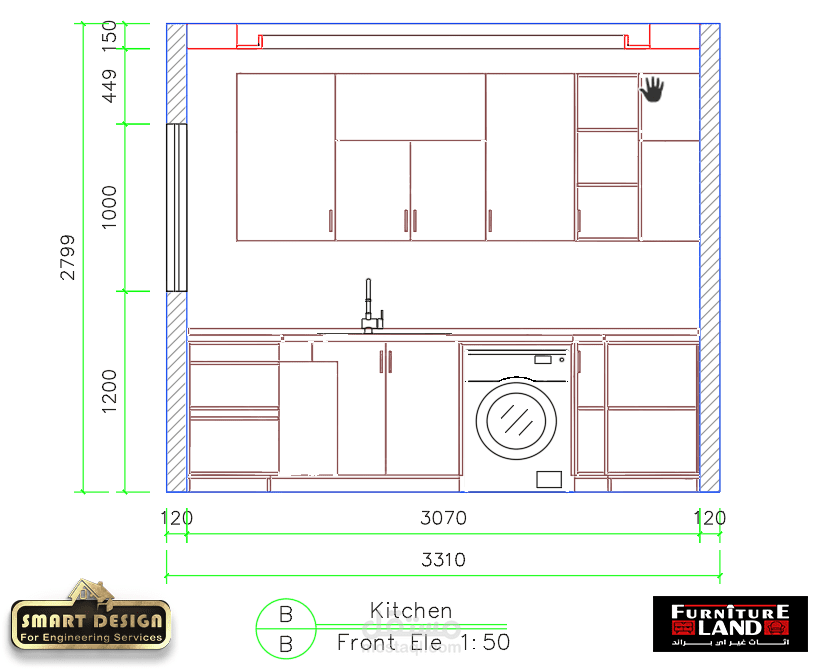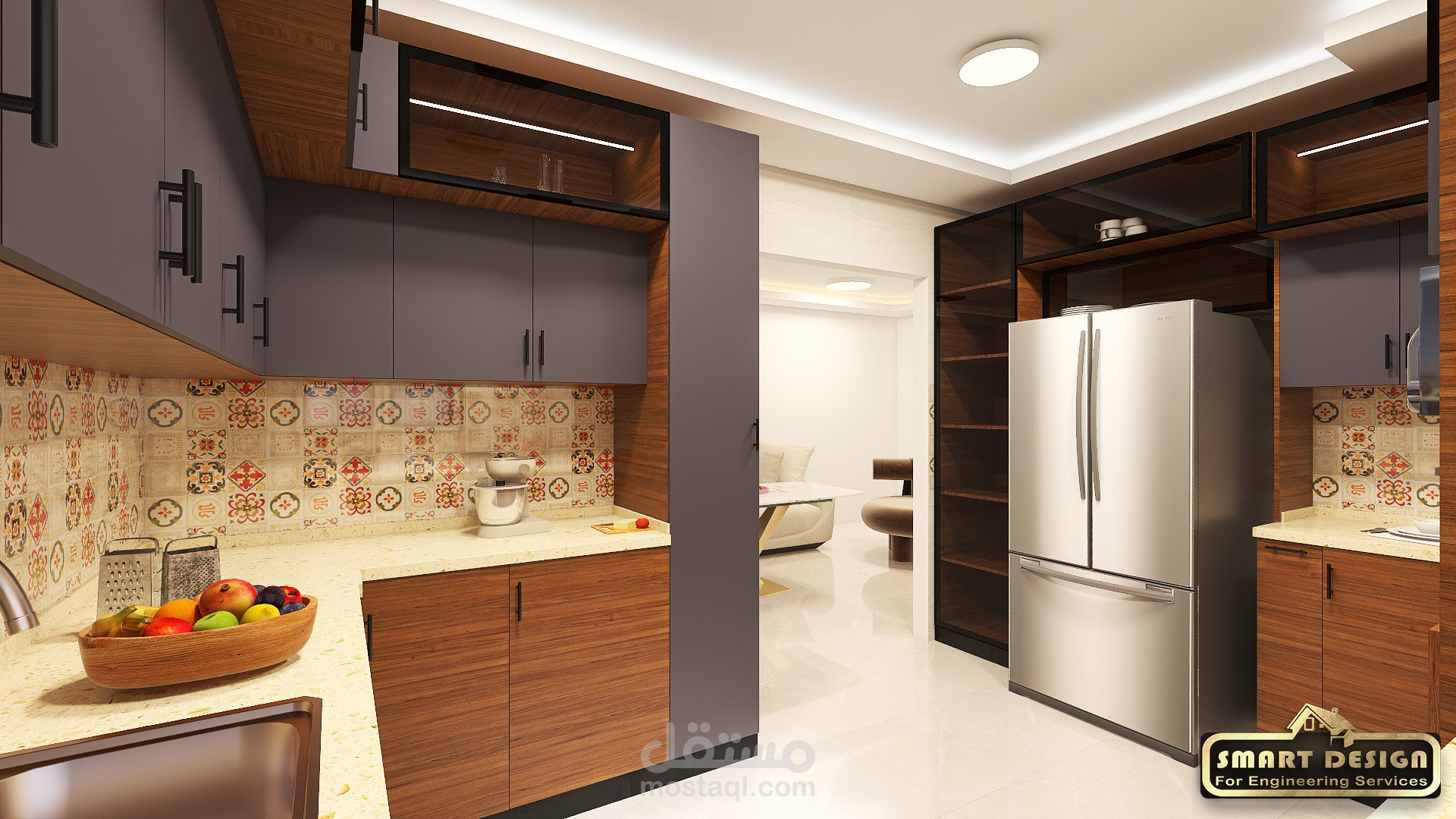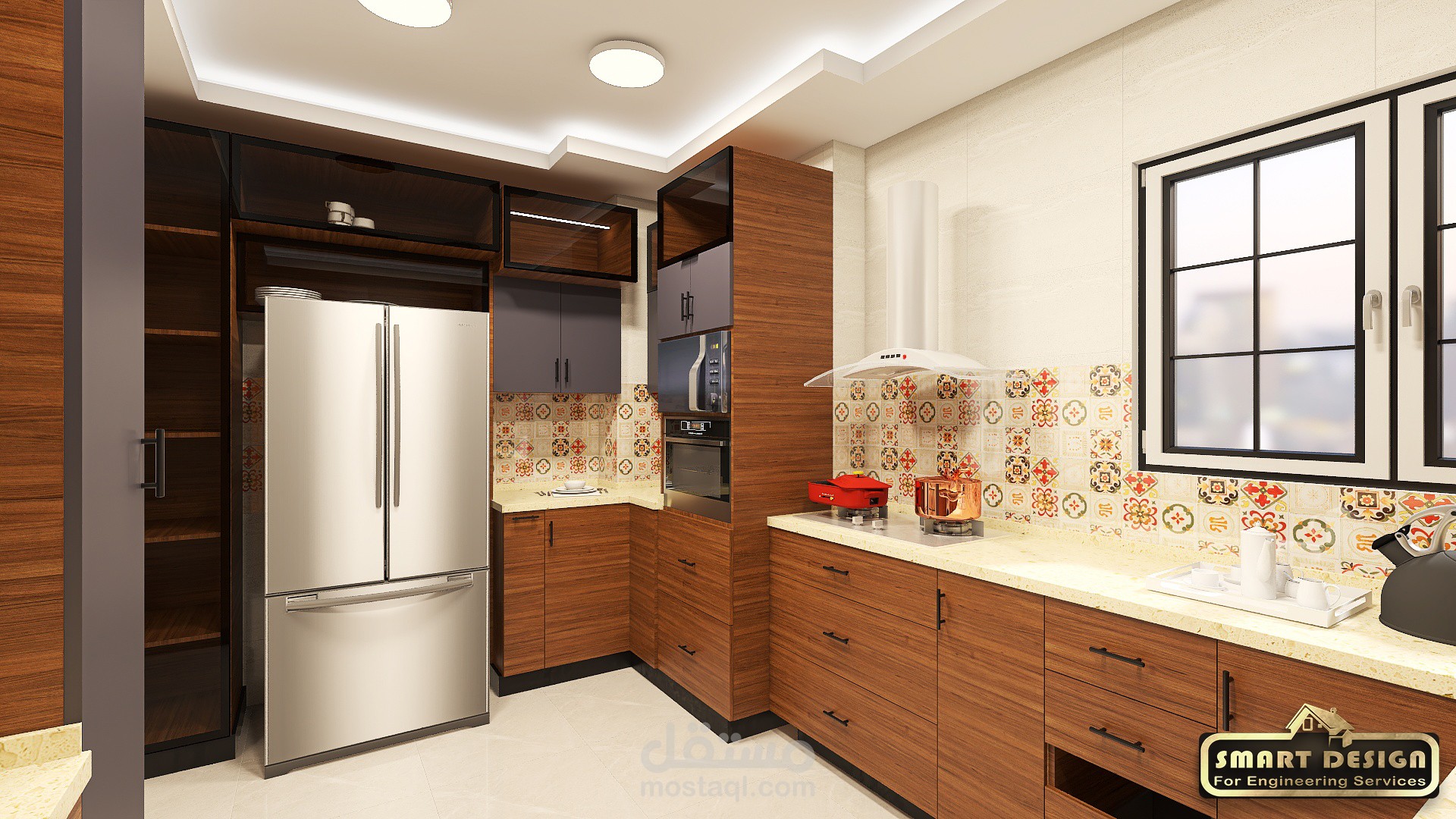 تصميم معمارى لمطبخ مودرن شامل رسومات 2D ورسومات 3D وشامل تفاصيل الابعاد والمقاسات التفصيلية للرسومات التنفيذية
