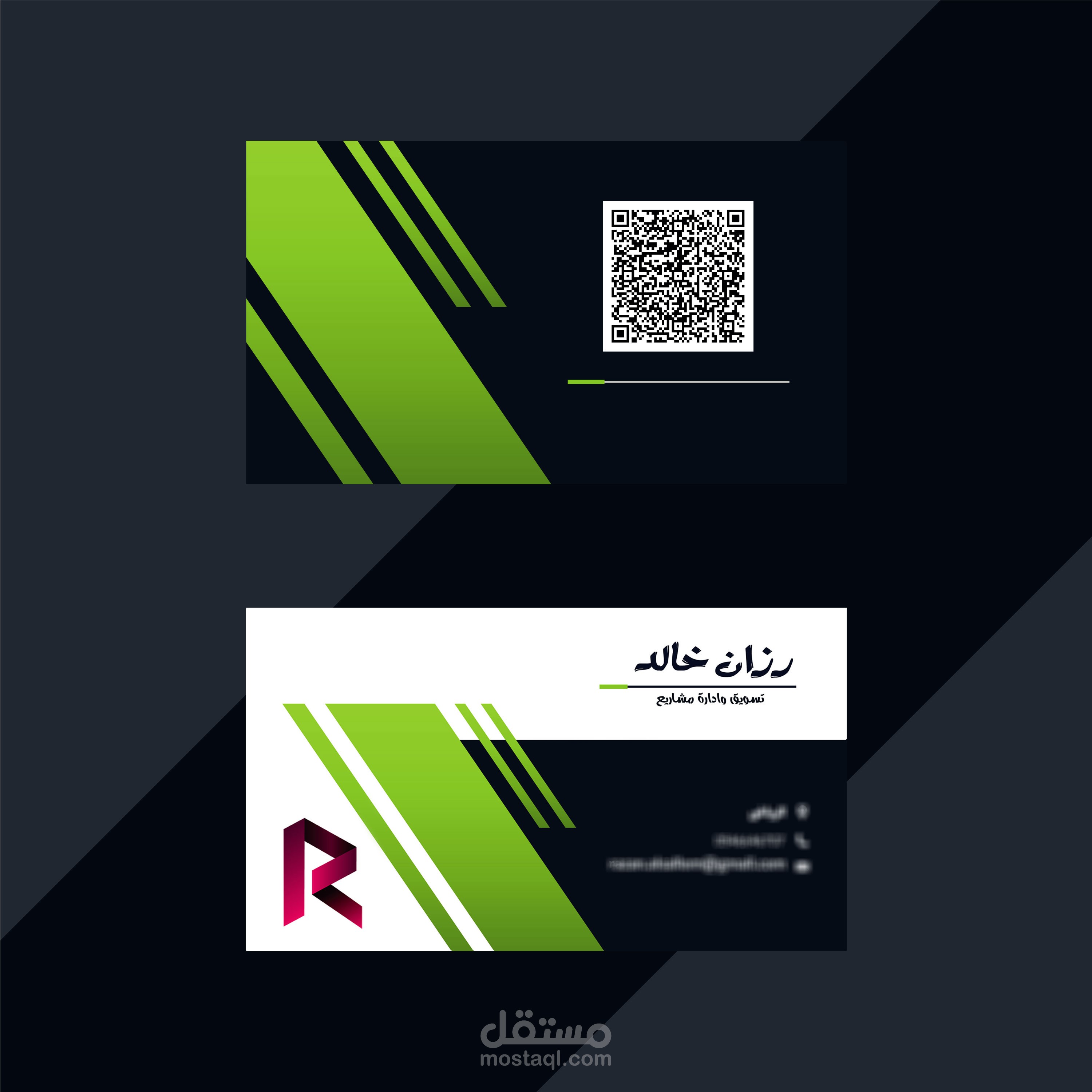 تصميم كارت عمل ووضع عليه شعار و Qr الخاص بالمالك