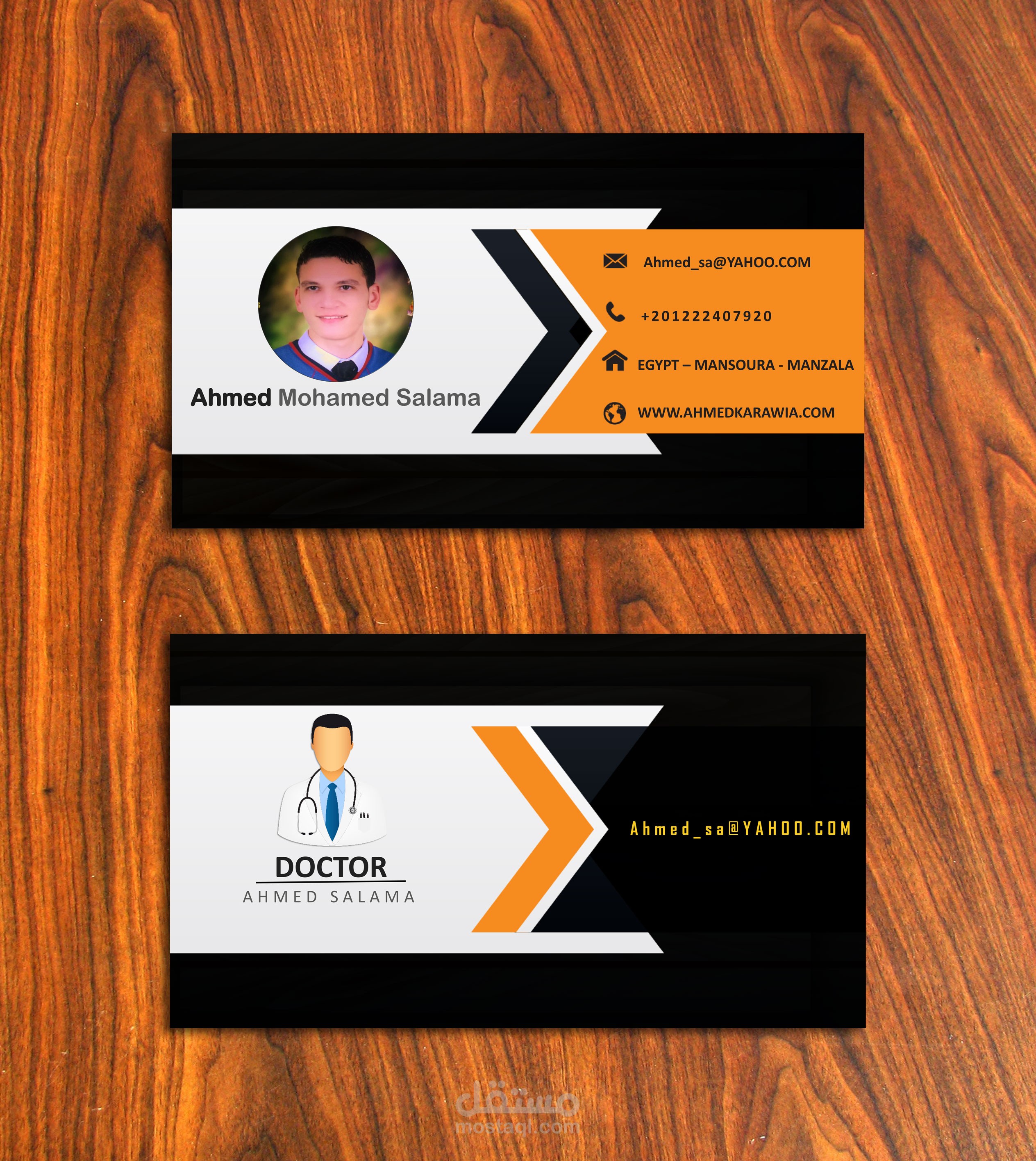 عمل بطاقة عمل لطبيب ووضع صورة شخصية له ولوجو مناسب لنوع العمل لاعطاء شكل مختلف في تصميم الكارت