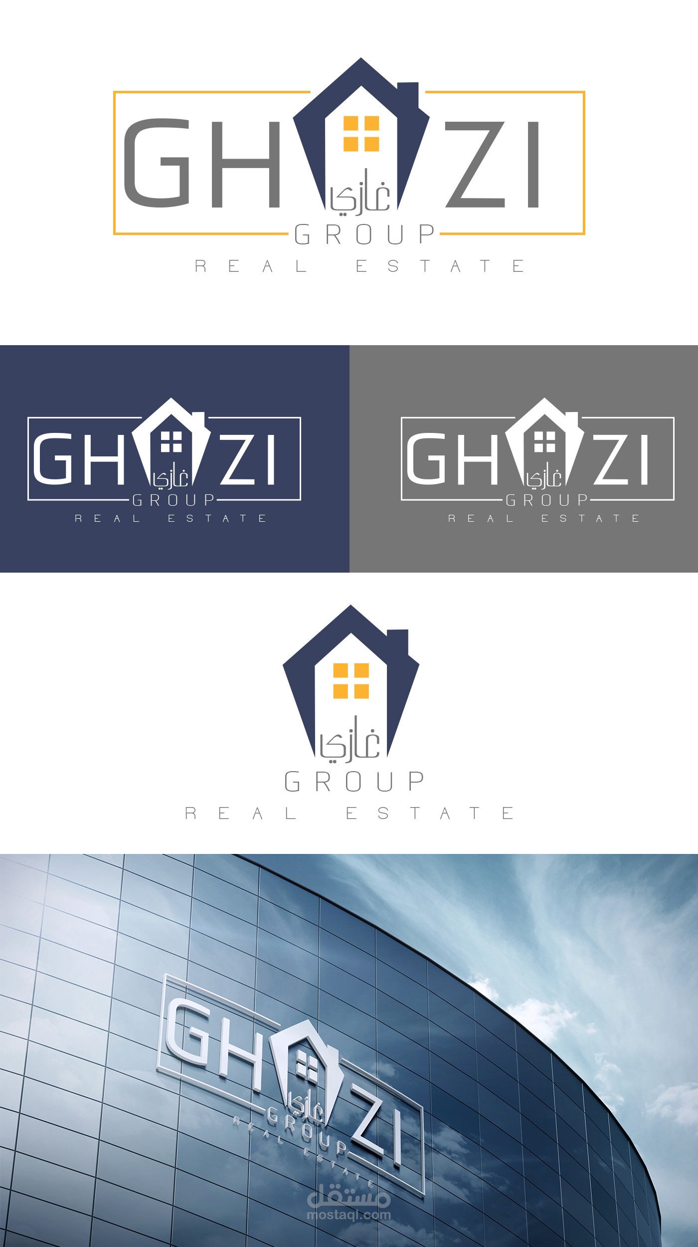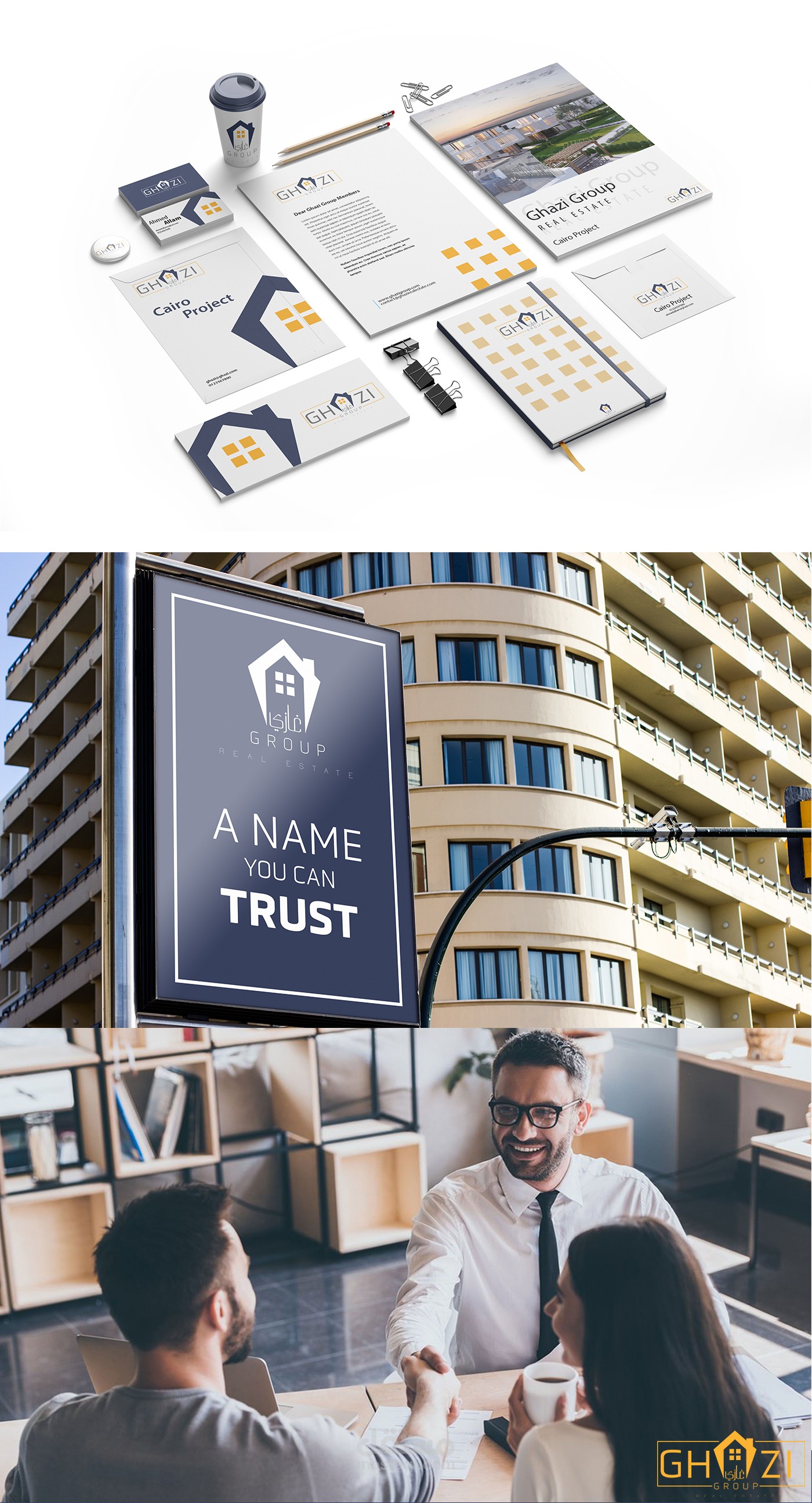 Ghazi is a real estate company in Cairo, Egypt. I created the logo with their name and used the letter "A" as an illustration of a home to illustrate their field of work. I chose the colors grey, blue, and yellow to represent the urban scene we see with concrete glass windows and the sun. It stands for strength and development.