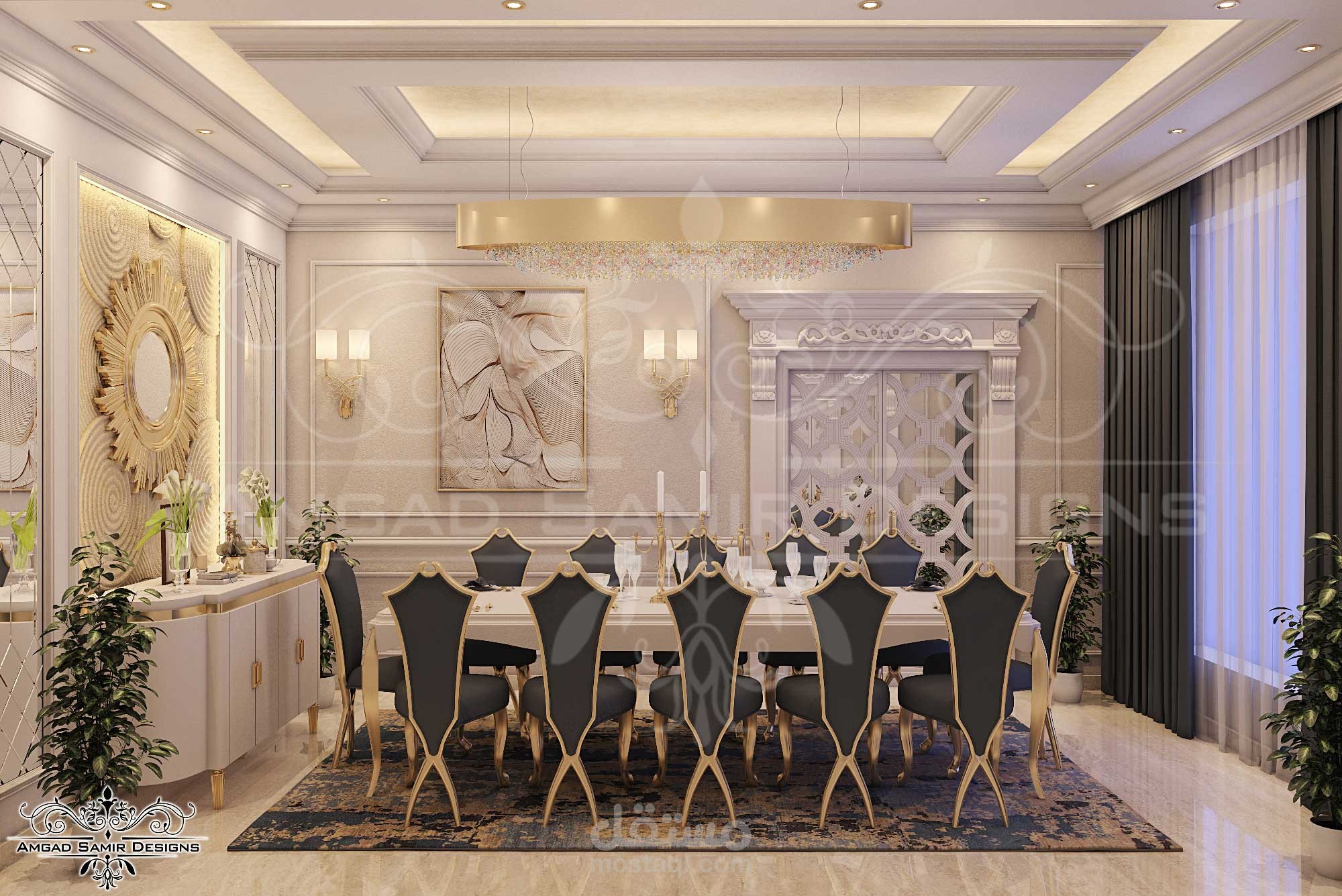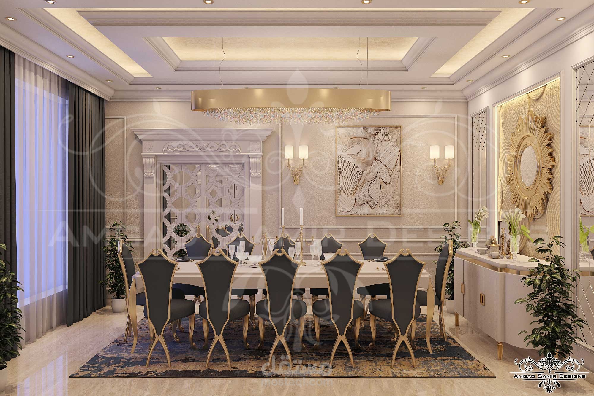 من اعمالي علي موقع مستقل تصميم داخلي نيو كلاسيك لغرفة طعام بفيلا بالسعودية من احدي الفراغات التي كانت ضمن الاتفاق ....