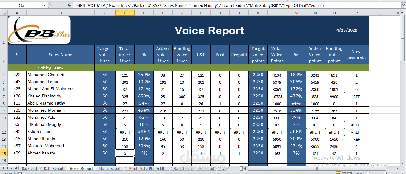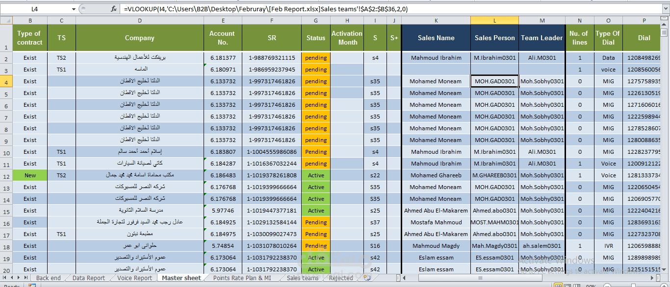 قمت بعمل ملف اكسيل مبرمج لتنظيم وادارة البيانات الخاصة بشركة مبيعات بحيث يعمل على تخزين المبيعات الخاصة بالتيمات المختلفة الموجودة بالشركة يحتوي أيضا على شيت يعرض تقرير مفصل عن تفاصيل هذه البيانات بطريقة مبسطة وسهلة القراءة وشيت أخر يمثل Dashboard لمتابعة تقدم وسير عملية المبيعات في طريقة عرض احترافية ومبسطة للغاية