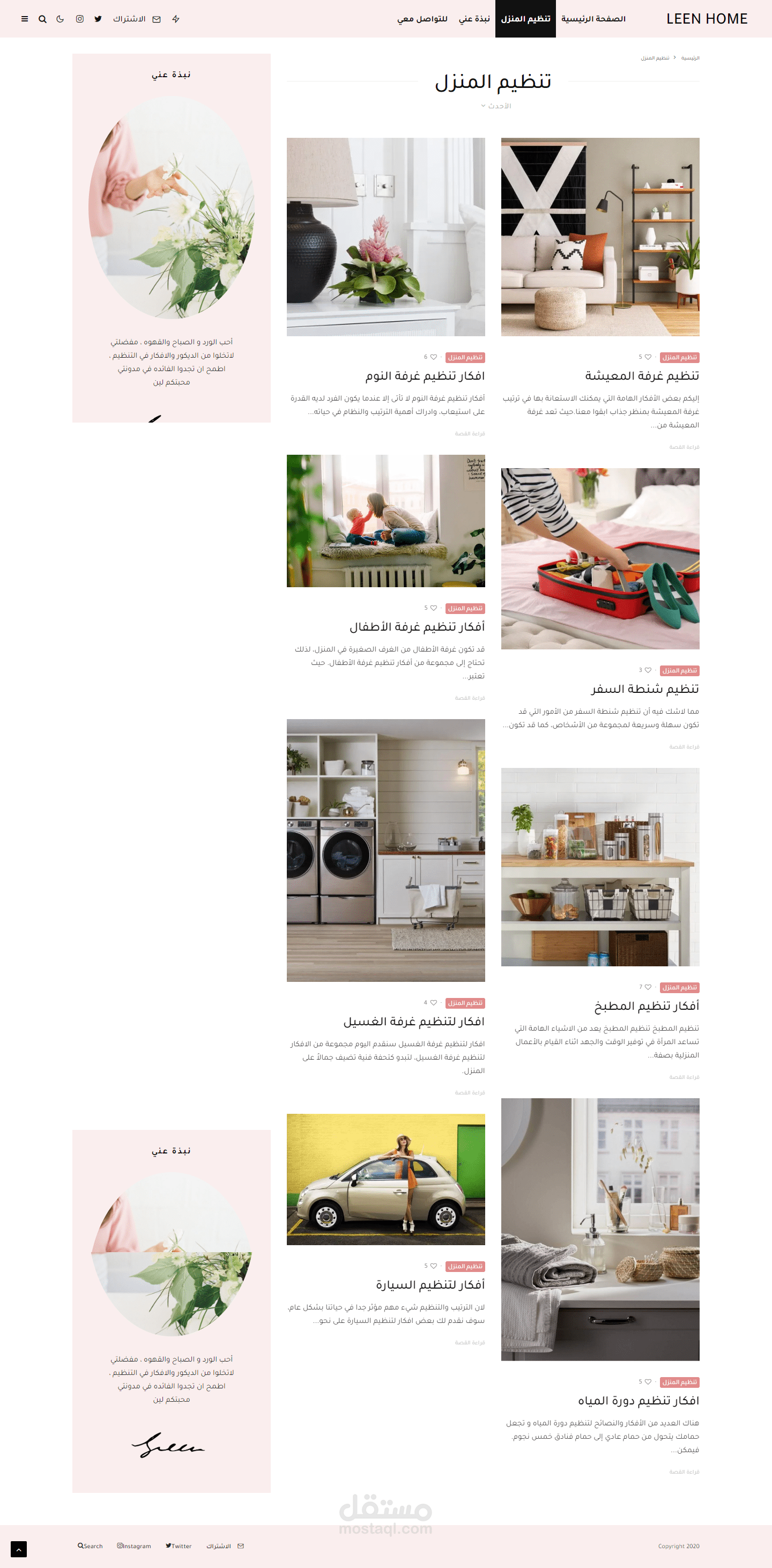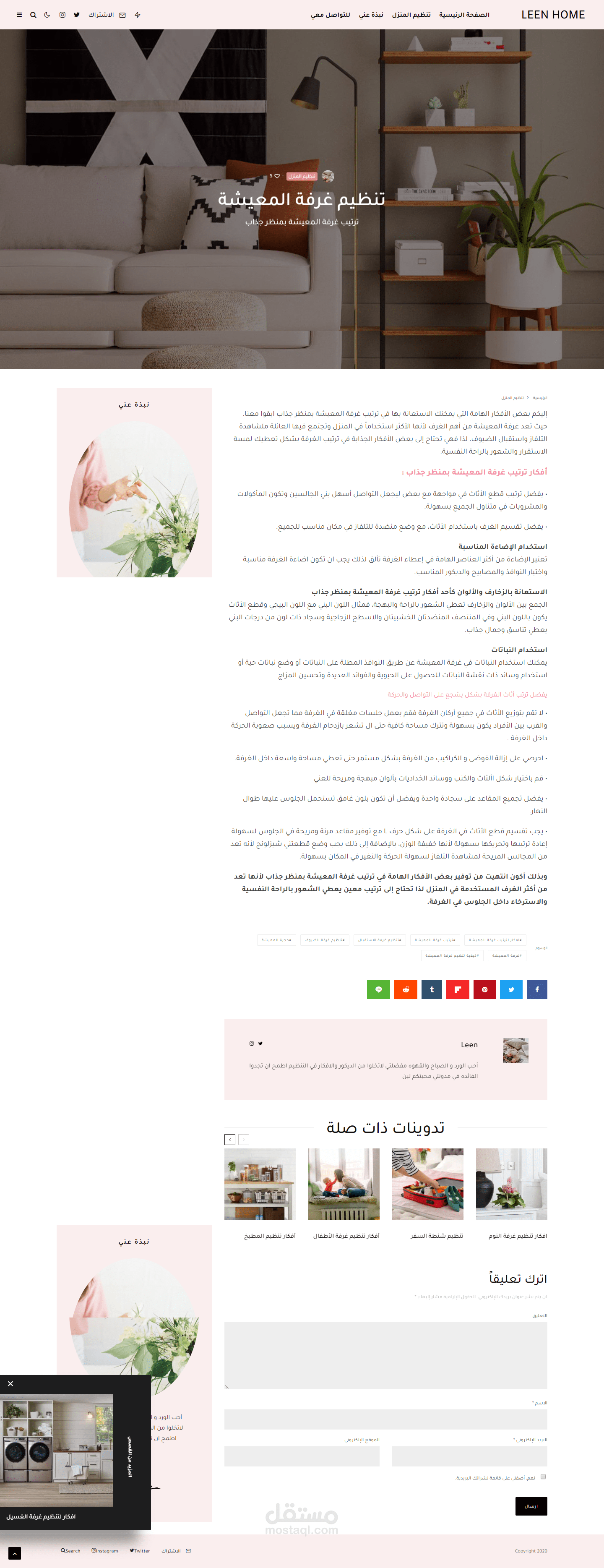 مدونة شخصية بألوان هادئة للصديقة الرائعة LEEN تكتب فيها عن طرق تنظيم المنزل وغيرها من أمور الحياة ..