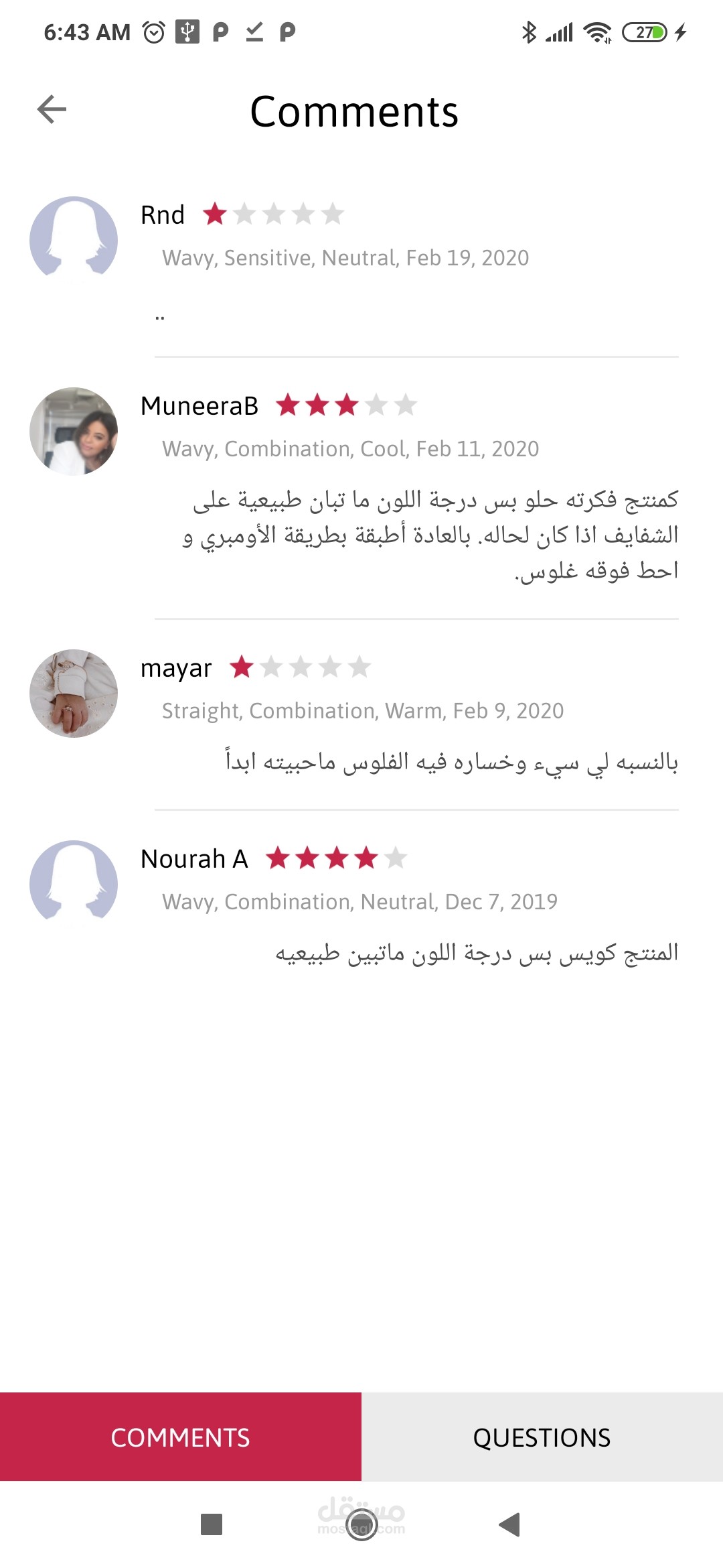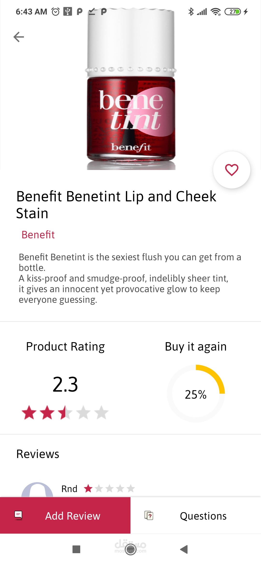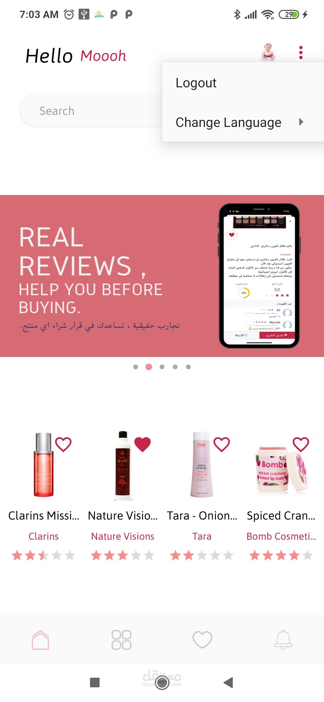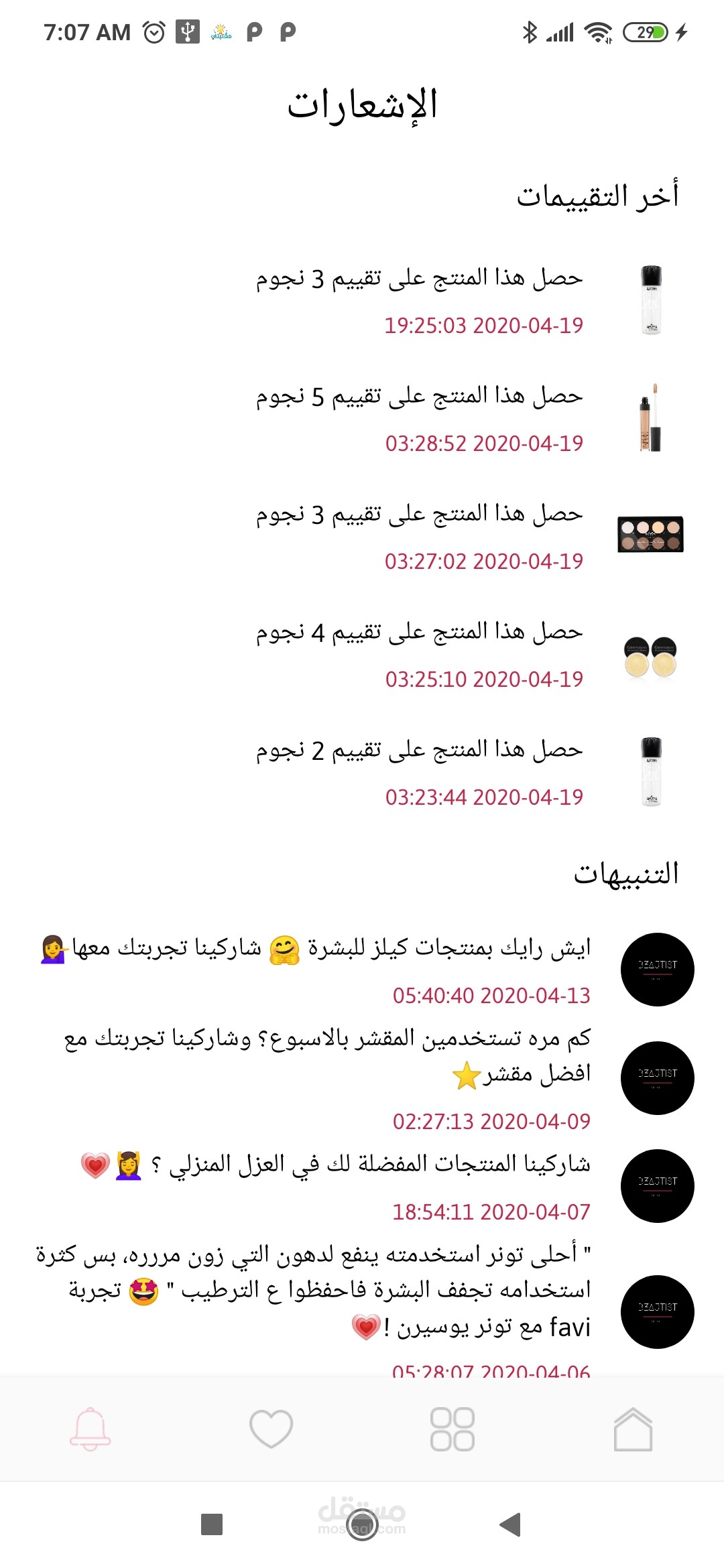 تطبيق بعرض منتجات الميك أب والعناية بالجسم ويستطيع المستخدم إضافة تقييم على المنتج بناء على تجربة للمنتج وإضافة سؤال للإستفسار عن المنتج