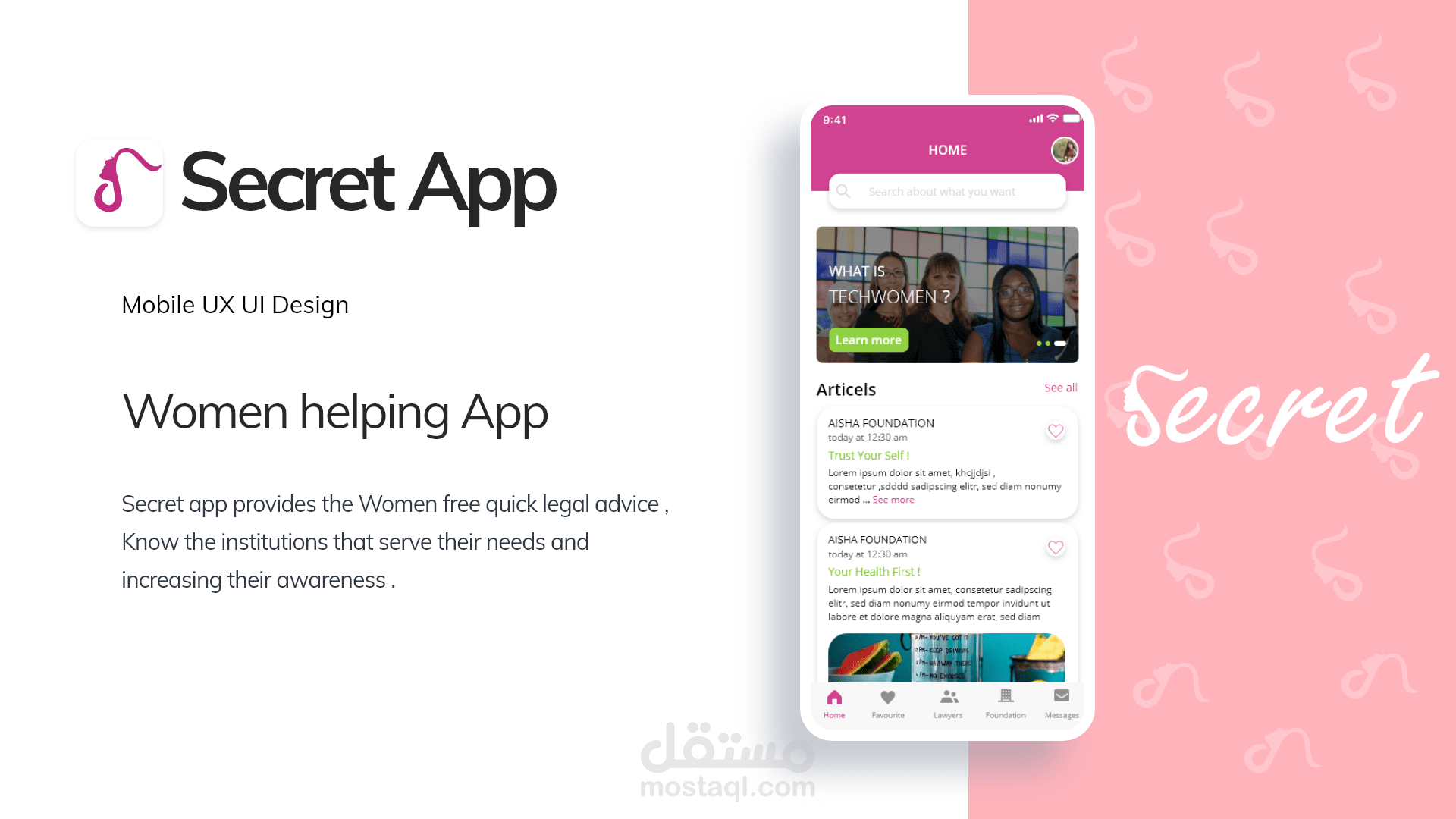 دراسة ux ui كاملة ل تطبيق يحاول الحد من عمليات العنف القائمة بناءا على الجنس والتي يمكن حدها من خلال الحل الذي ابتكرناه داخل هذا التطبيق
