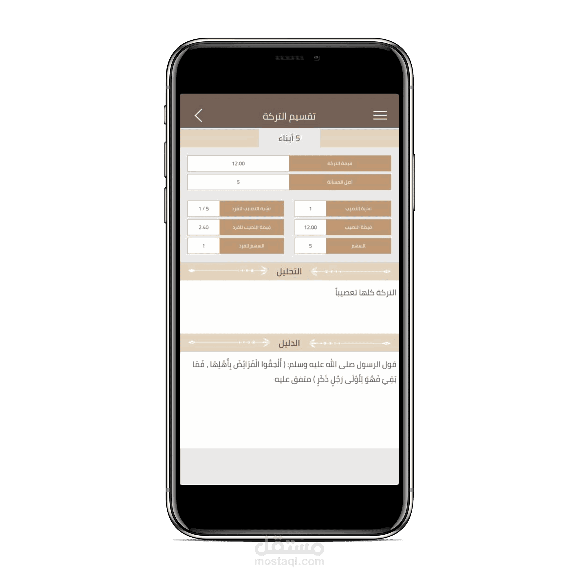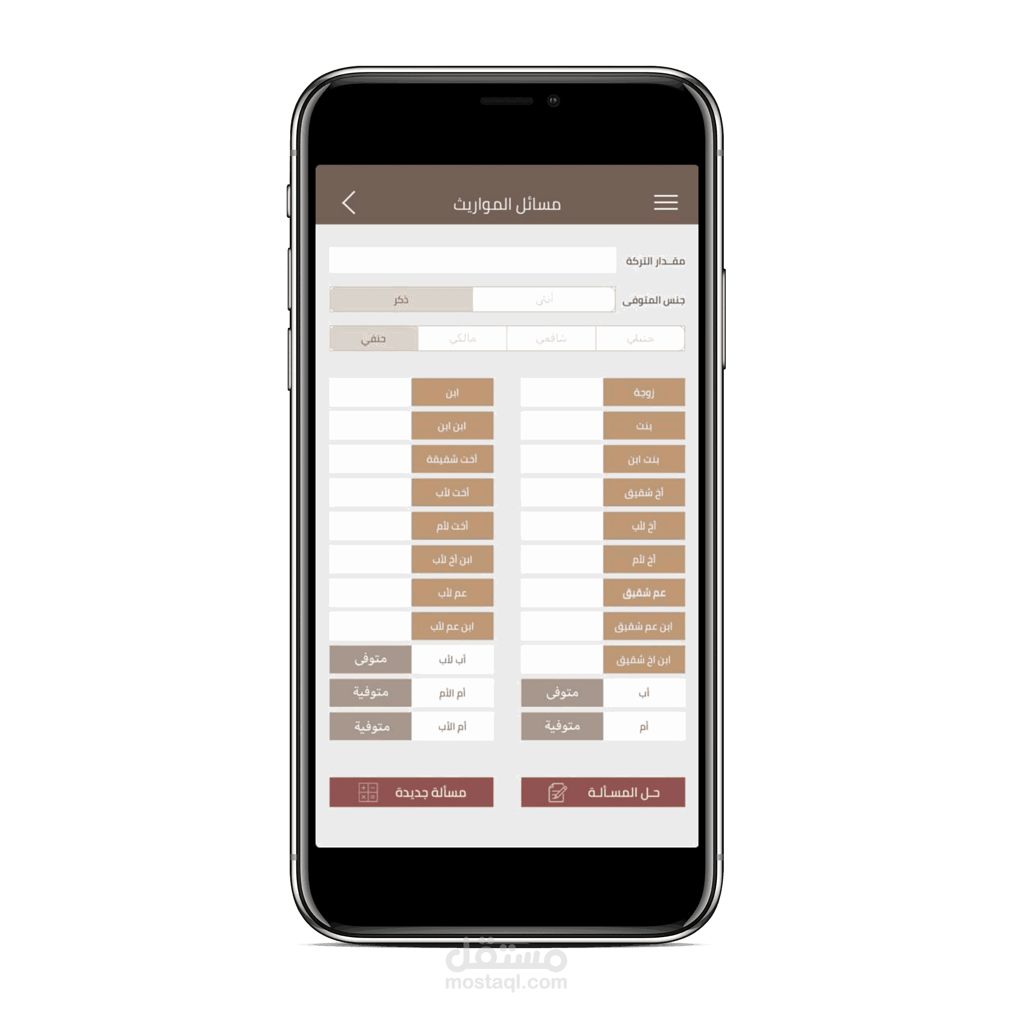 أدخل بيانات المسألة وسيظهر لك حلها بالدليل الشرعيّ ونصيب كل وارث في ثوان معدودة. ويتميز التطبيق بالدقة العلية والشمول حيث قام على إخراجه مجموعة متميزة من الباحثين الشرعيين والفنيين المتخصصين، وتم اختباره ومراجعته أكثر من مرة من علماء متخصصين في علم الفرائض.