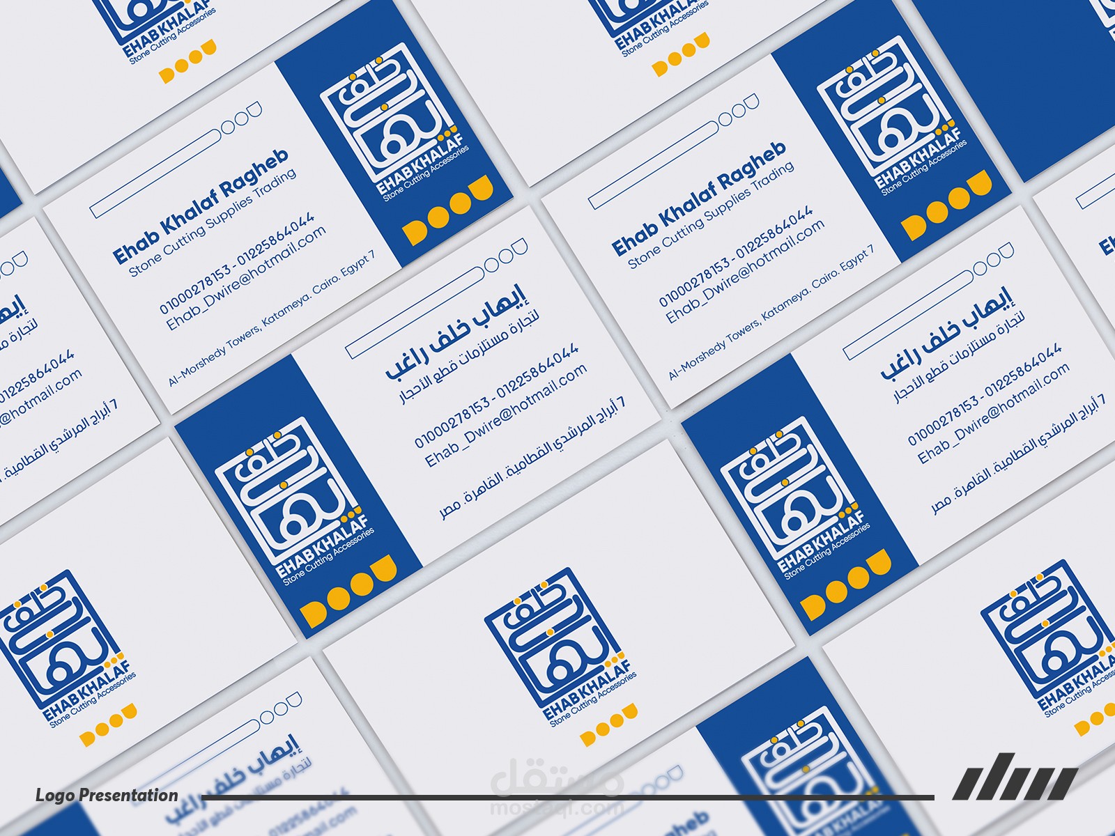 The idea of the customer is to arrive at a logo in Arabic script, but it appears to be modern and easy to read to reach the popularity of the workers who work in the quarries and reach the targeted companies that will deal with him in purchasing these tools and supplies and all these companies in Egypt and this is the real targeting.