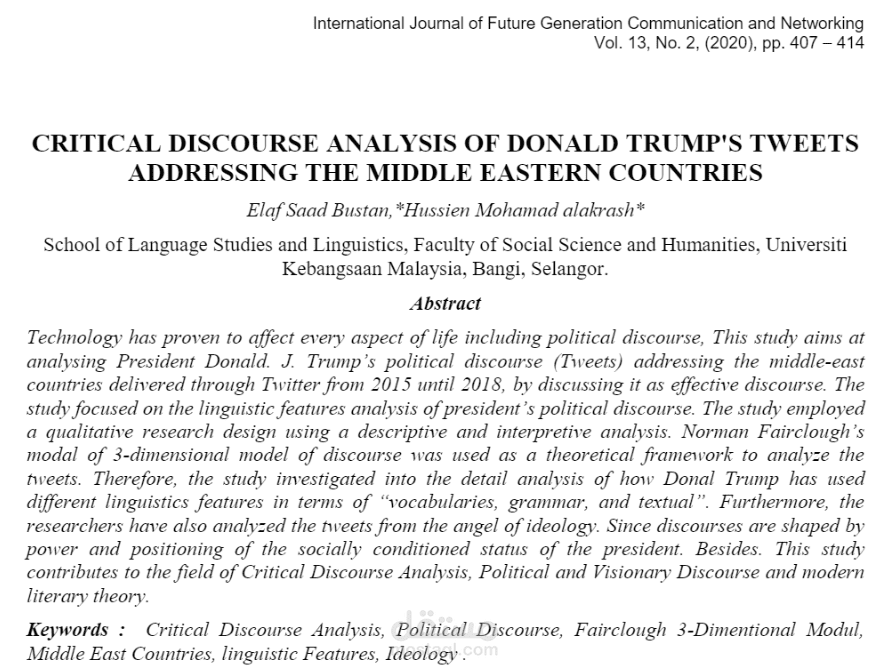 CRITICAL DISCOURSE ANALYSIS OF DONALD TRUMP'S TWEETS ADDRESSING THE MIDDLE EASTERN COUNTRIES