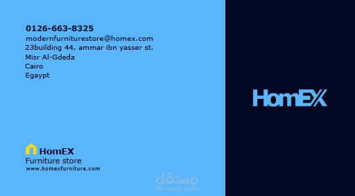 العمل عباره عن تصميم بطاقه تعريفيه "Business Card" لمتجر لبيع الأثاث المنزلي الذي تم تصمصم شعار له من قبل.