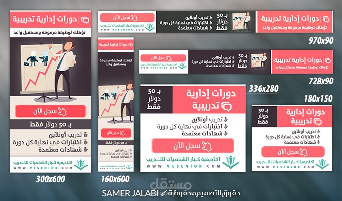 تصميم بانراات إعلانية لمواقع عديدة لإعلانات غوغل وفيسبوك وغيرها