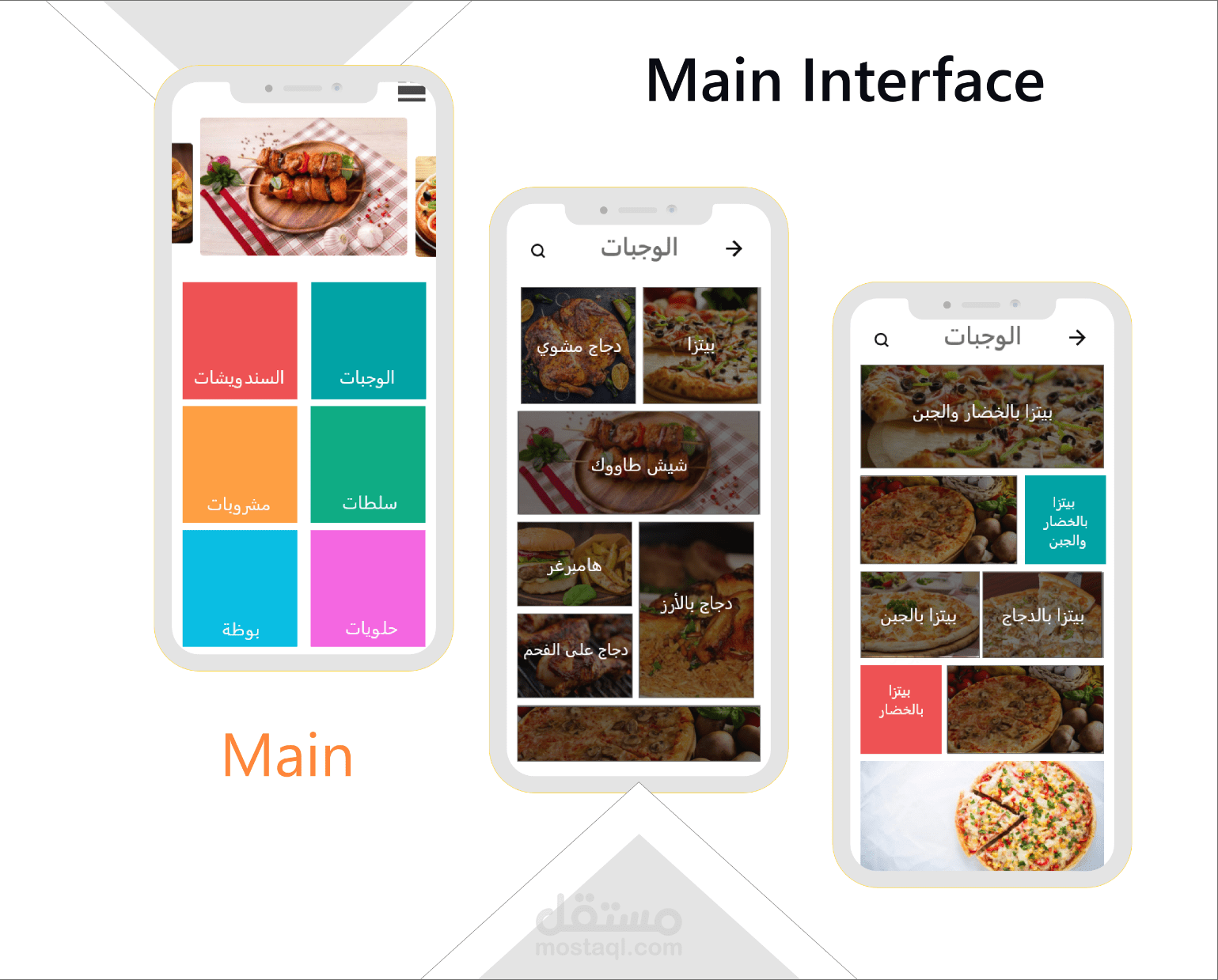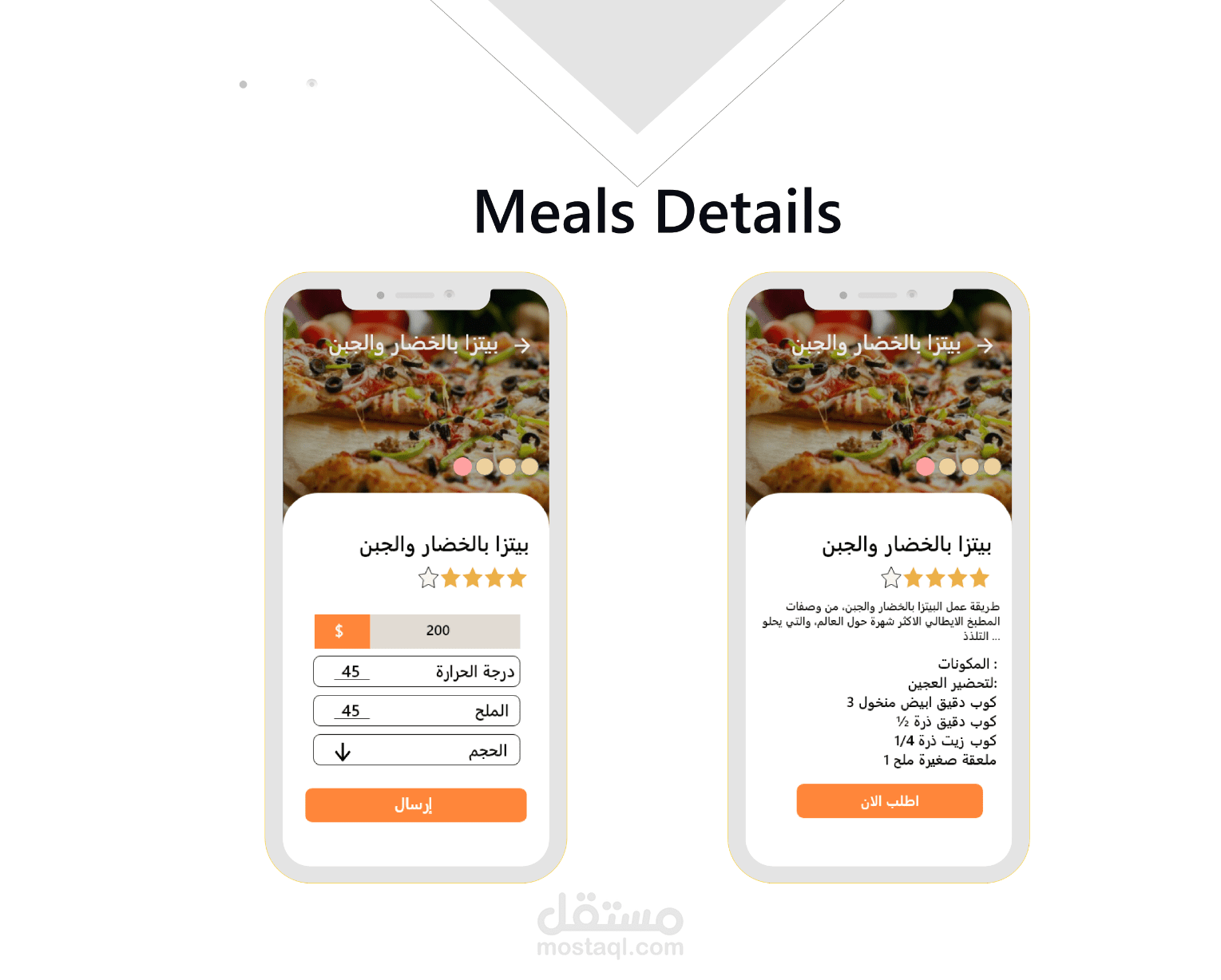 يحتوي على أقسام مختلفة ووجبات مختلفة يقدمها التطبيق.