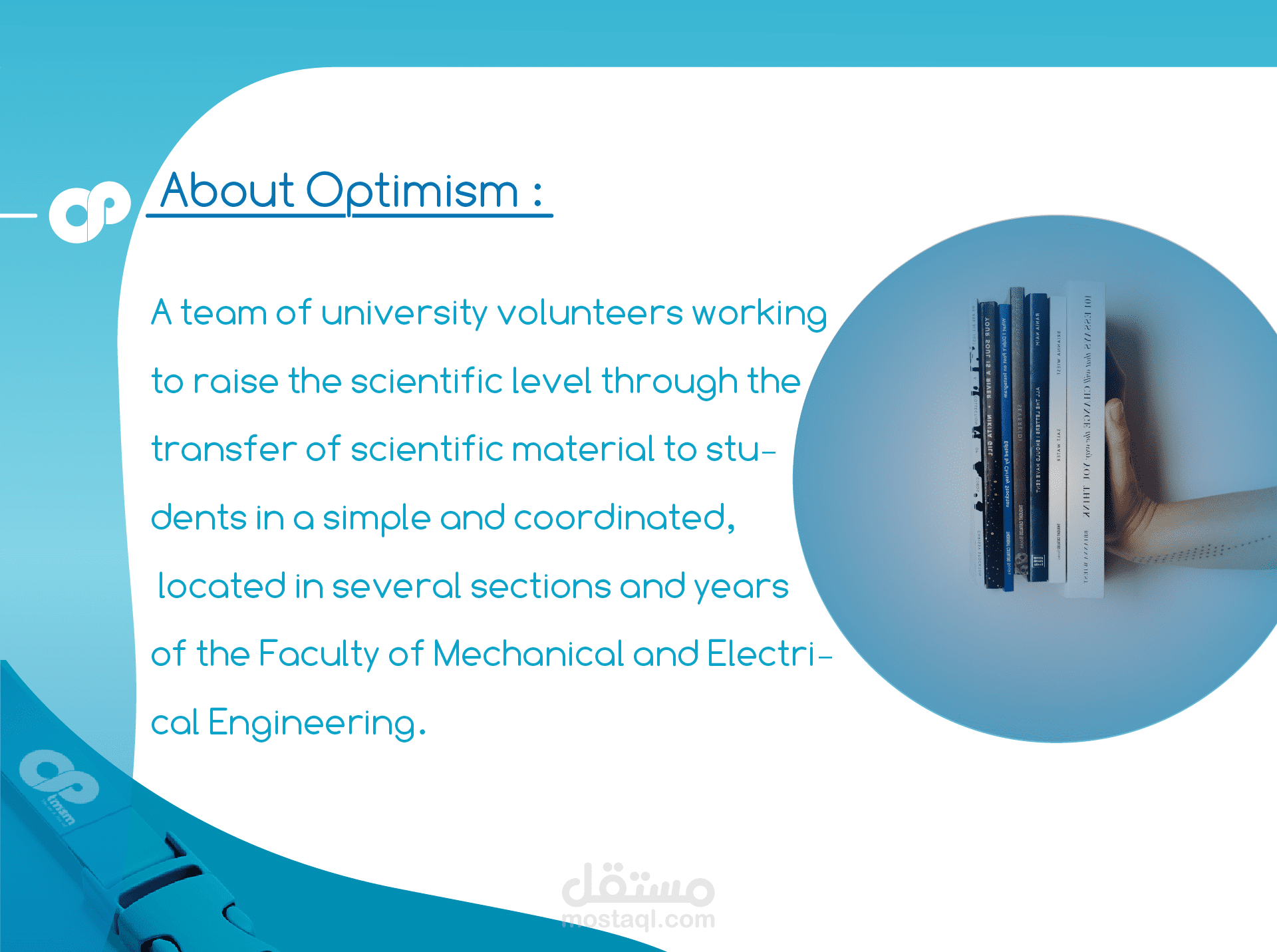 فريق طلابي جامعي تم استخدام اول حرفين من الاسم لتشكيل اشارة اللانهاية للاشارة على استمرارية التطور والتعلم