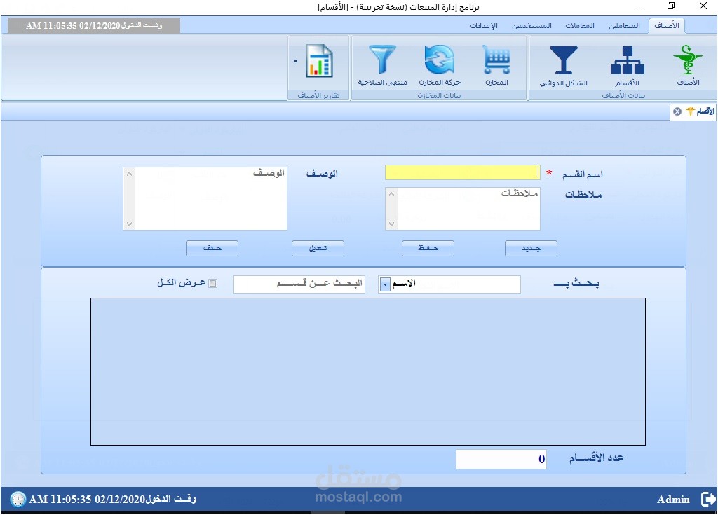 1. إدارة بيانات أقسام الادوية