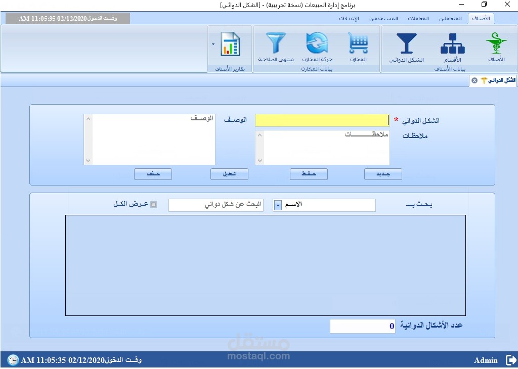 3. إدارة بيانات الأصناف ( الادوية والمستلزمات والأدوات والمعدات الطبية )