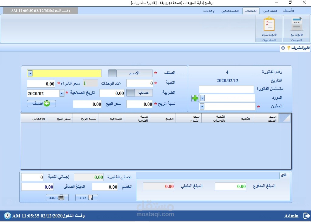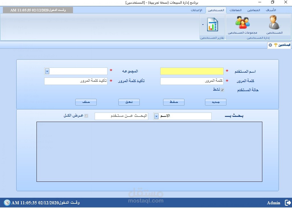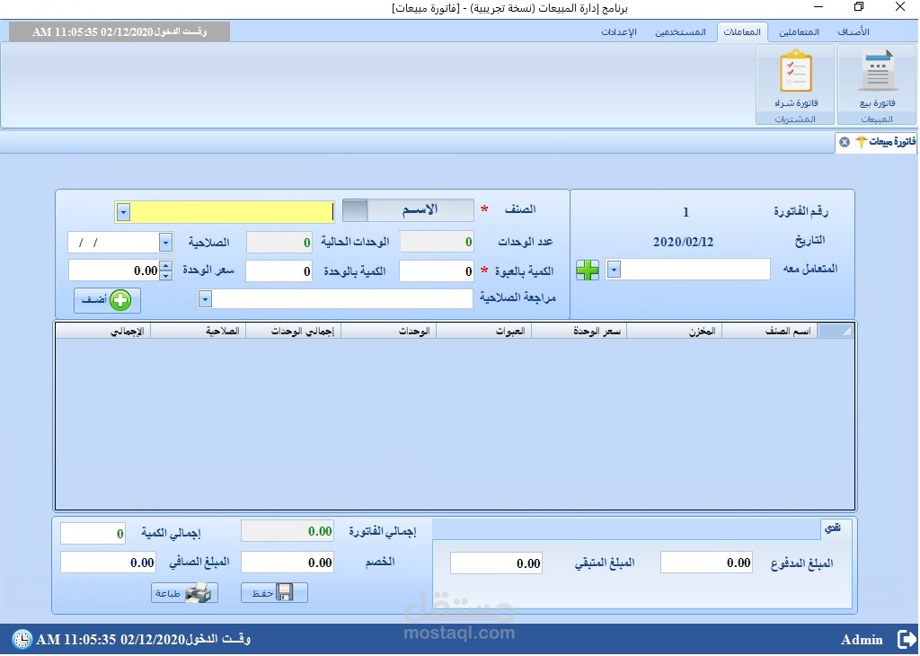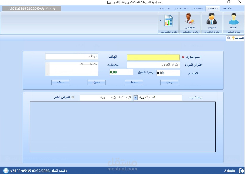 مبني على DotNet Framework بلغة C# وقواعد بيانات Sql Server وCrystal Reports