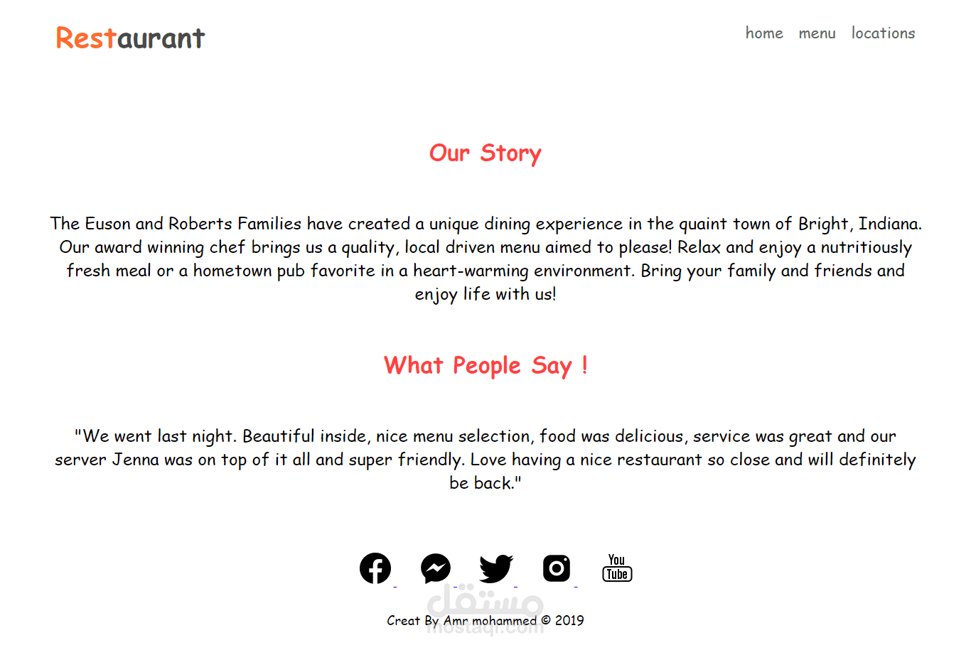 قمت بتصميم موقع لمطعم يوصل الوجبات اللي الزباين بلاضافه اللي انه يساعد امستخدمين هذا الموقع في الحجز مقاعد او حفلات من خلال الموقع